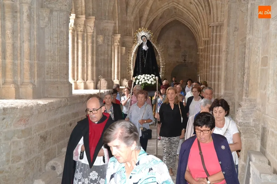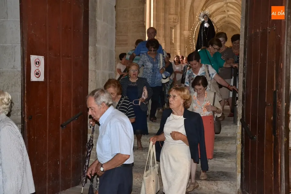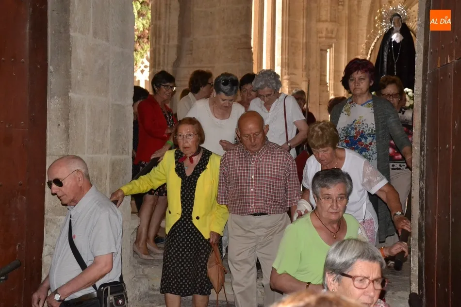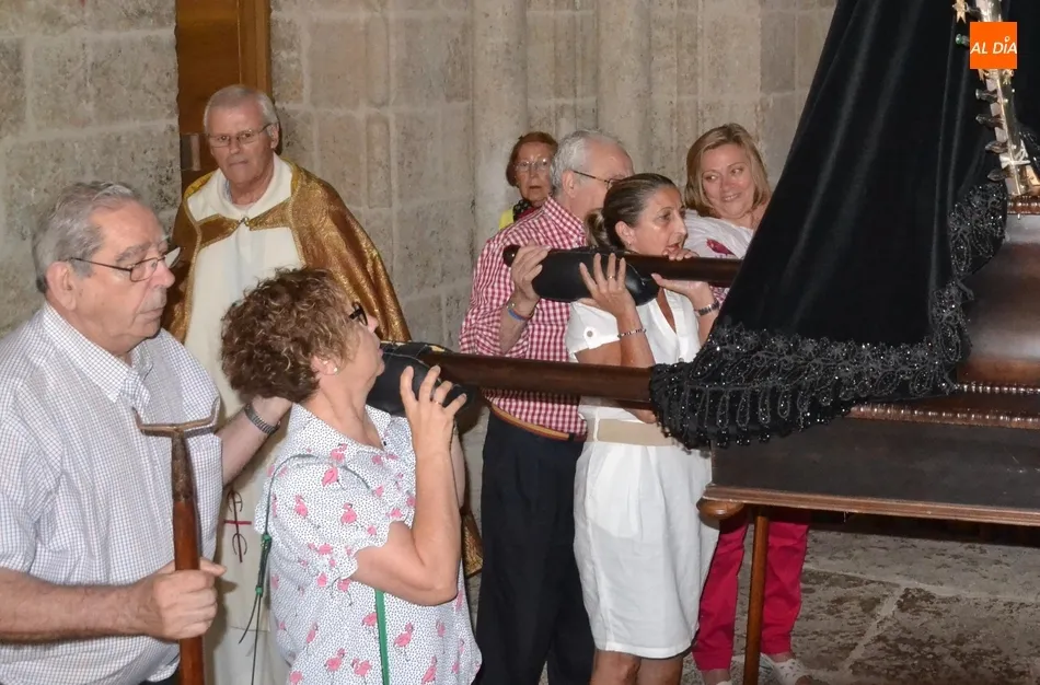 Concluida esa reflexión, llegó el momento de la procesión, en la cual desfilaron delante de la imagen de la Virgen el Vicario General de la Diócesis, Tomás Muñoz Porras, y las tres mayordomas que ha tenido La Soledad este año: Isabel Dos Santos, su hija María Rosa Moro Dos Santos, y María Teresa Ramos Vicente. Tras la imagen marchó Ángel Martín Carballo, así como el resto de fieles participantes en la celebración.