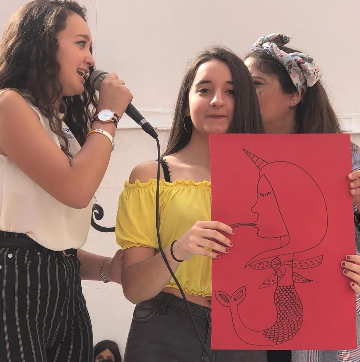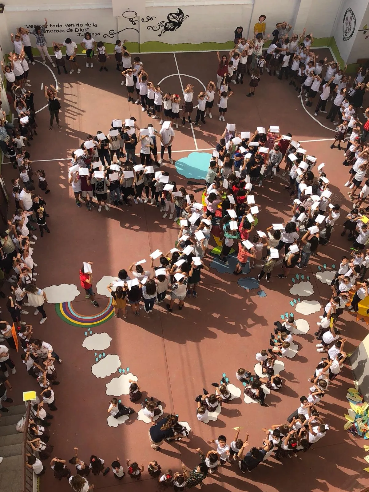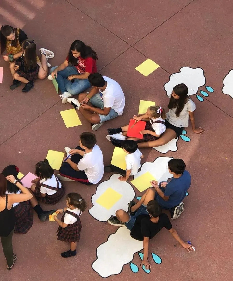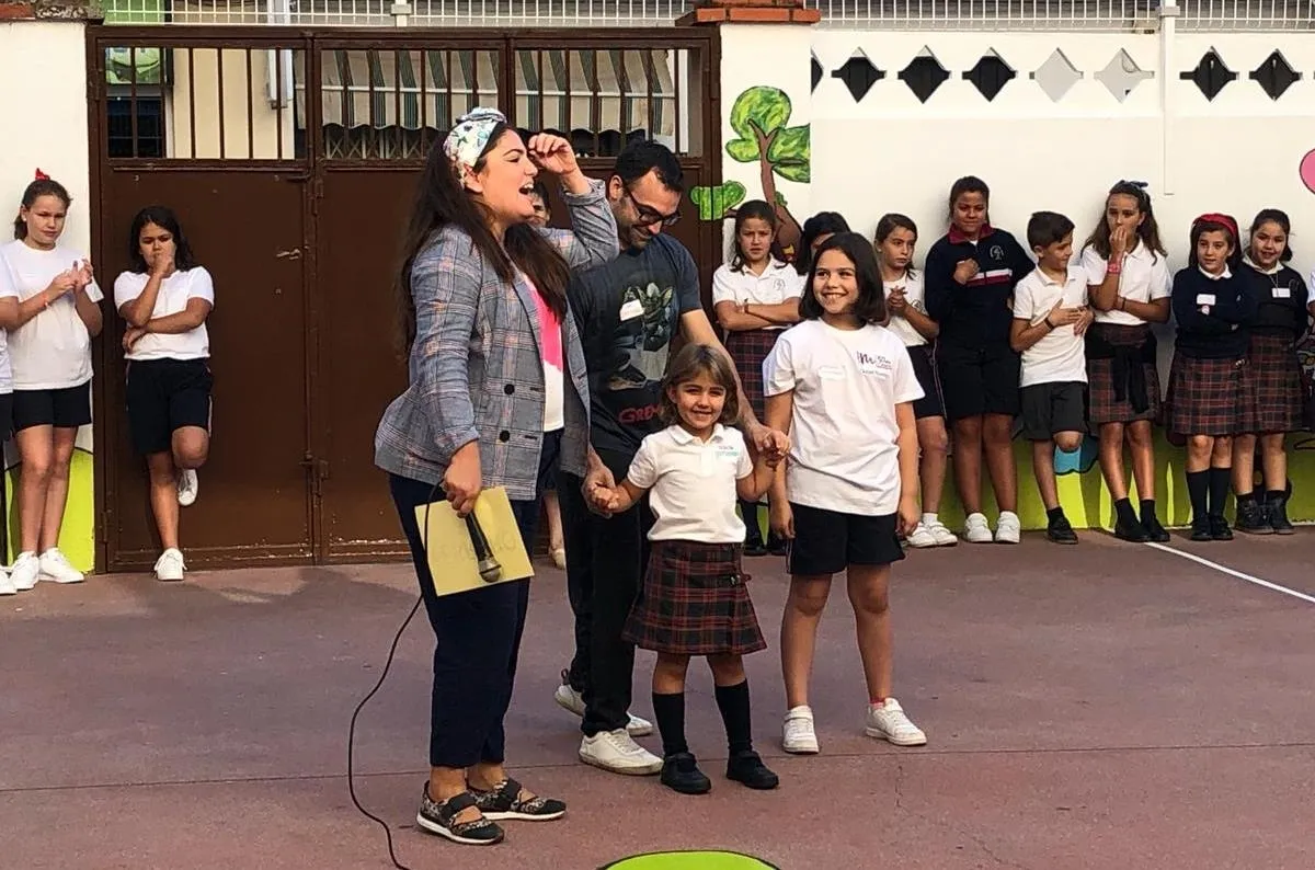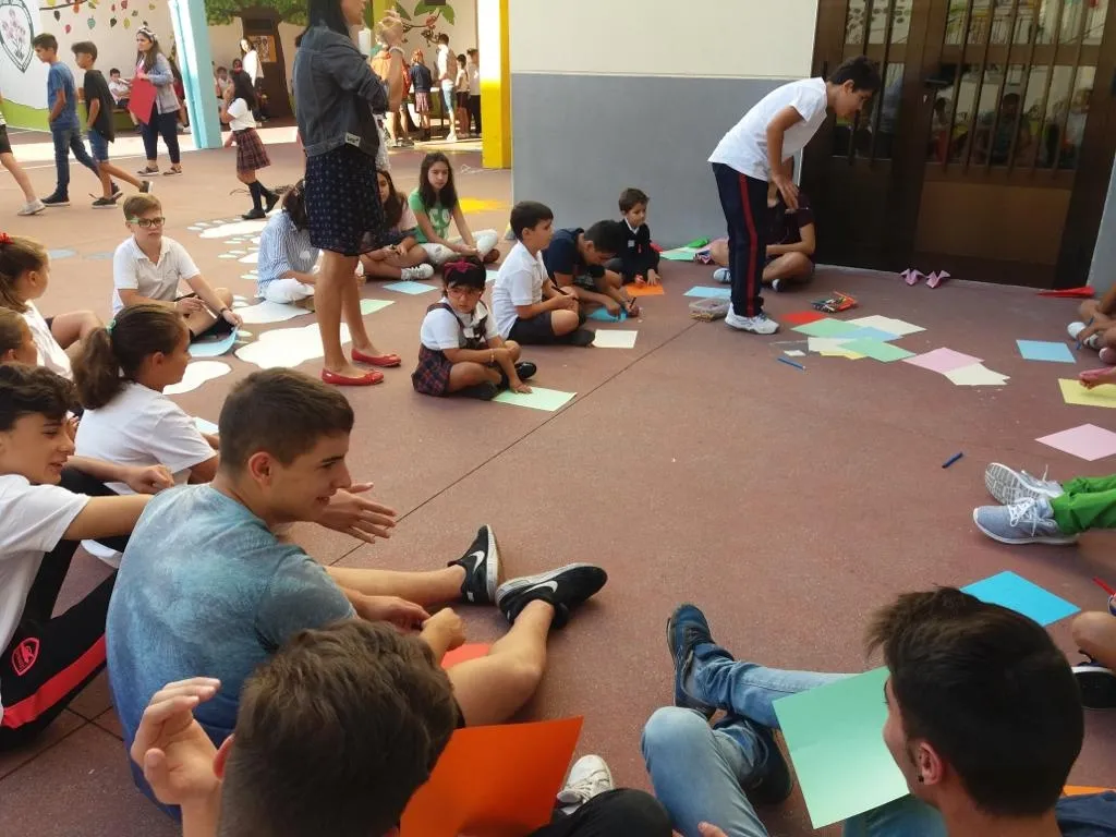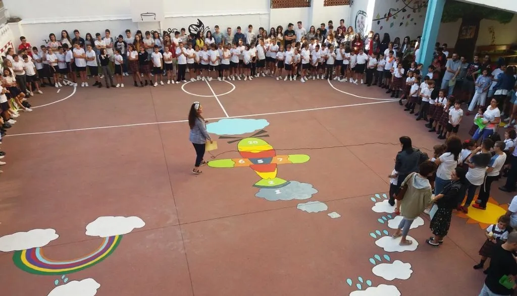 Todos los alumnos y profesores del Colegio se dieron cita en el edificio de la Avenida Conde de Foxá del centro, donde los escolares de Infantil y Primaria dieron la bienvenida en el patio a sus compañeros de Secundaria. A continuación, todos los presentes se dividieron por grupos de una forma muy original: según su mes de cumpleaños.