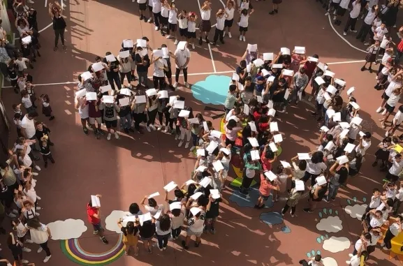 Una vez concluidas las rotaciones, todos regresaron al patio, donde presentaron las mascotas creadas, configurando un mosaico por el 50º Aniversario del Colegio.