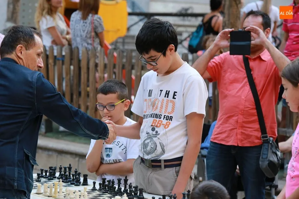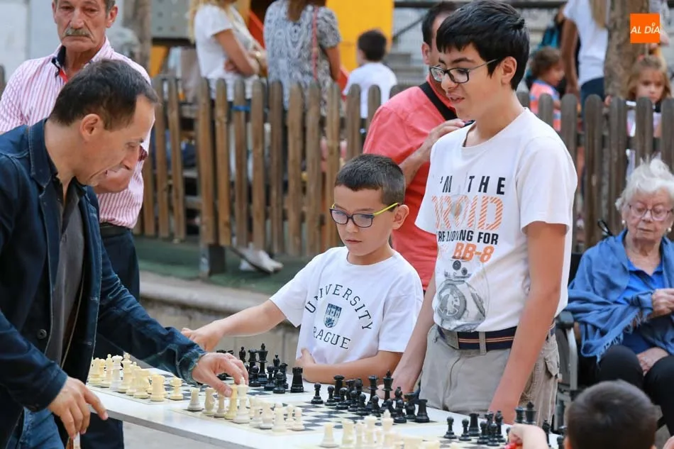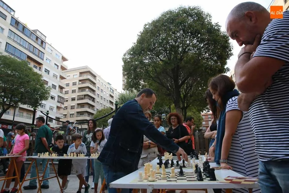 La plaza de Carmelitas acogió este miércoles al Club Deportivo Ajedrez de Salamanca con el objetivo de acercar, promocionar y difundir este deporte dentro de la sociedad. El evento contó con una gran partida simultánea, cuya organización se llevó a cabo de manera conjunta con la Asociación de Vecinos Zoes.