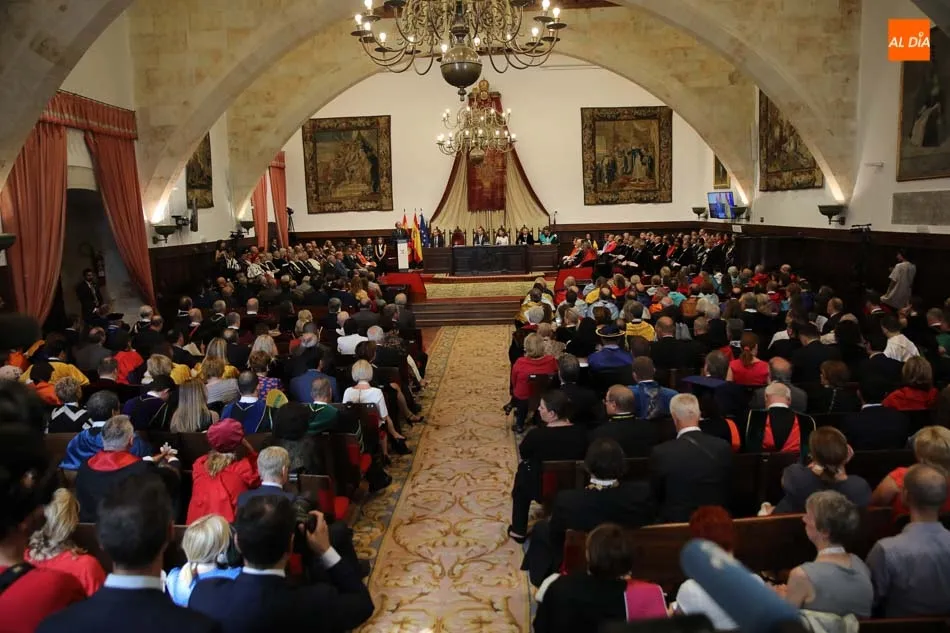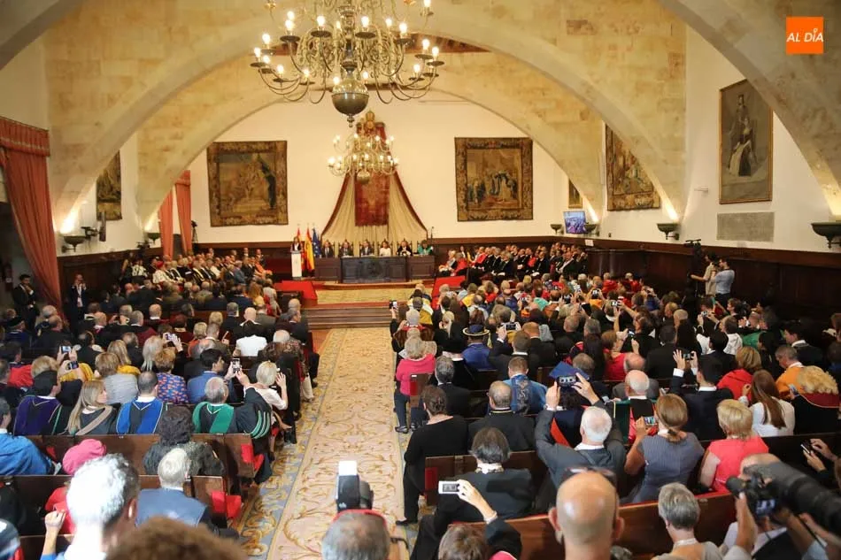 El Paraninfo de la Universidad de Salamanca acogía este acto, presidido por los Reyes y con la presencia de representantes de 250 instituciones académicas