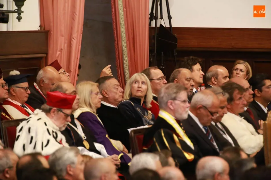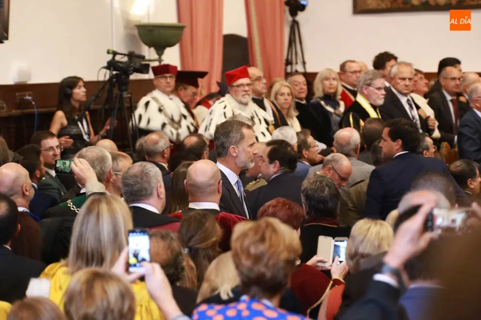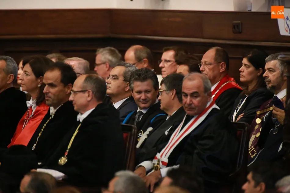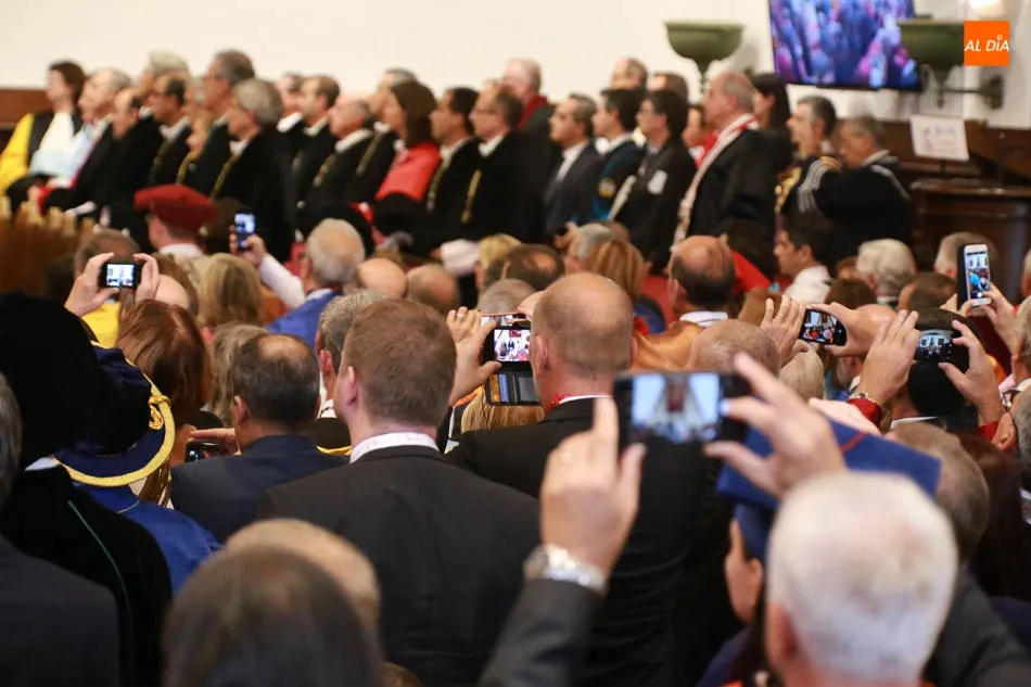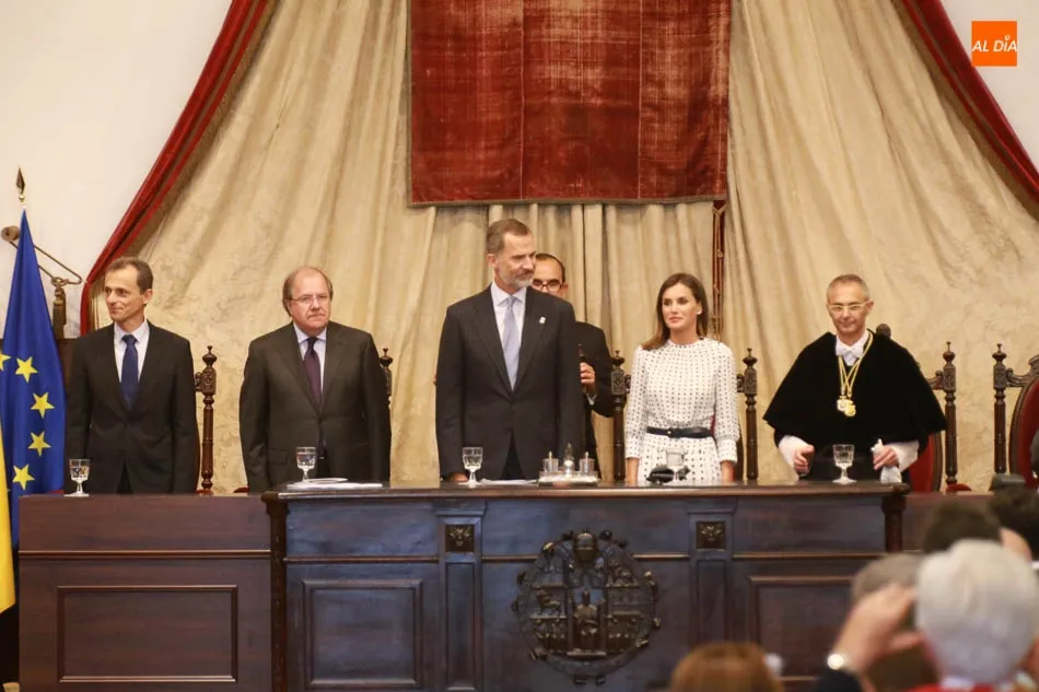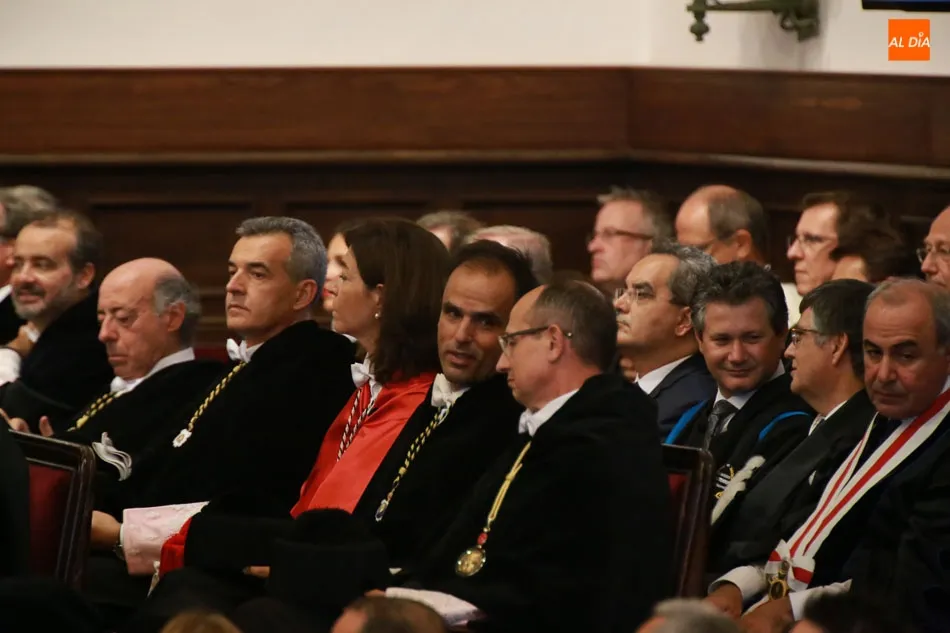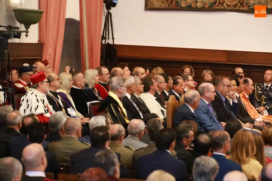 A este prestigioso acto académico acudían los Reyes de España, que presidieron la ceremonia, junto a autoridades nacionales, regionales o locales, como el ministro de Ciencia, Innovación y Universidades, Pedro Duque, el presidente de la Junta de Castilla y León, Juan Vicente Herrera, o el alcalde de Salamanca, Alfonso Fernández Mañueco, entre otros.