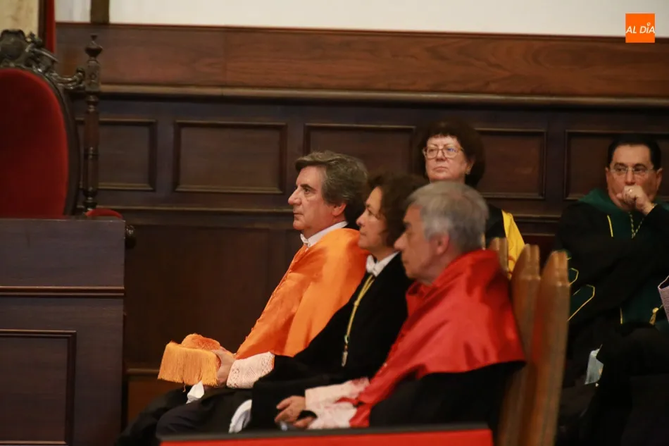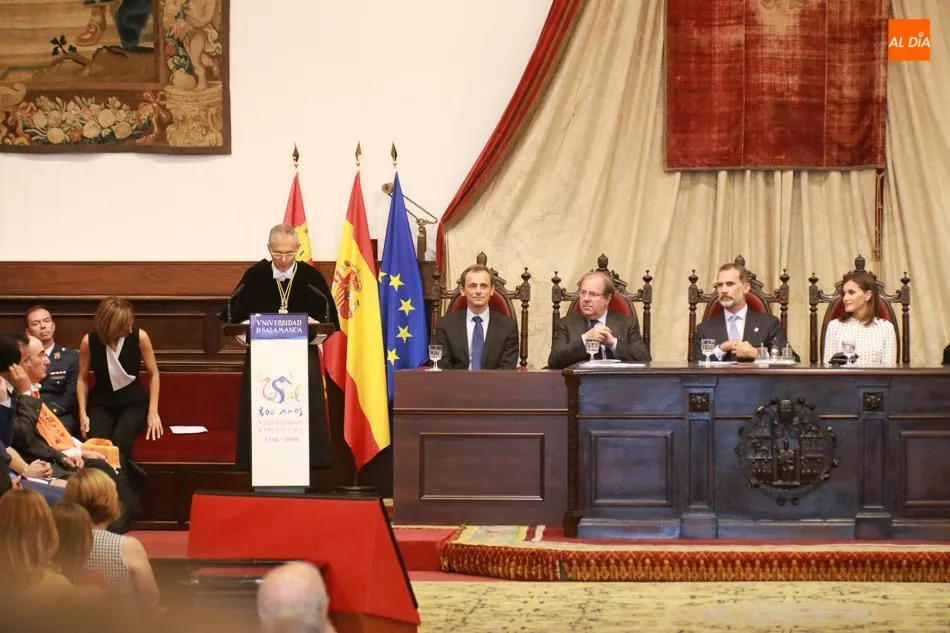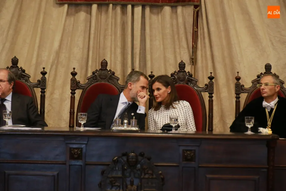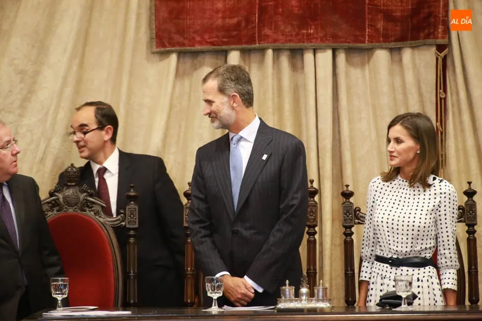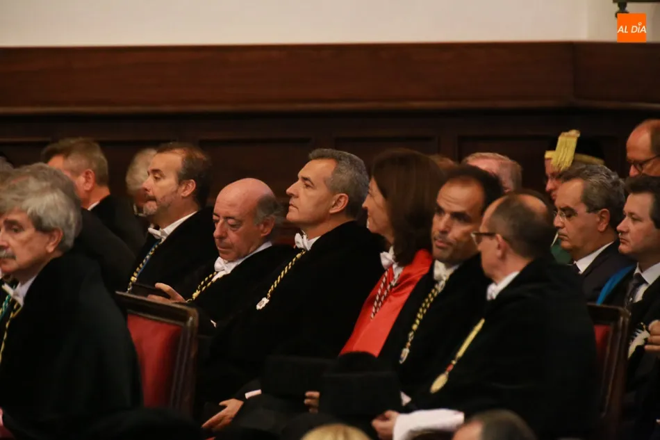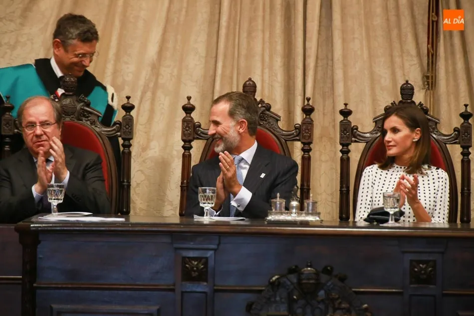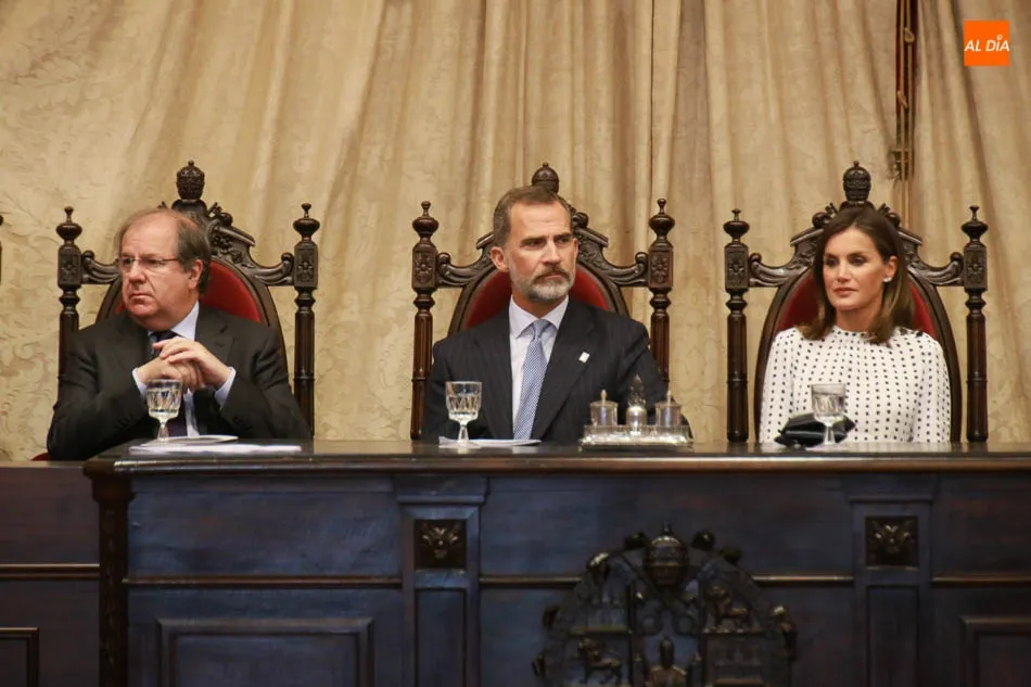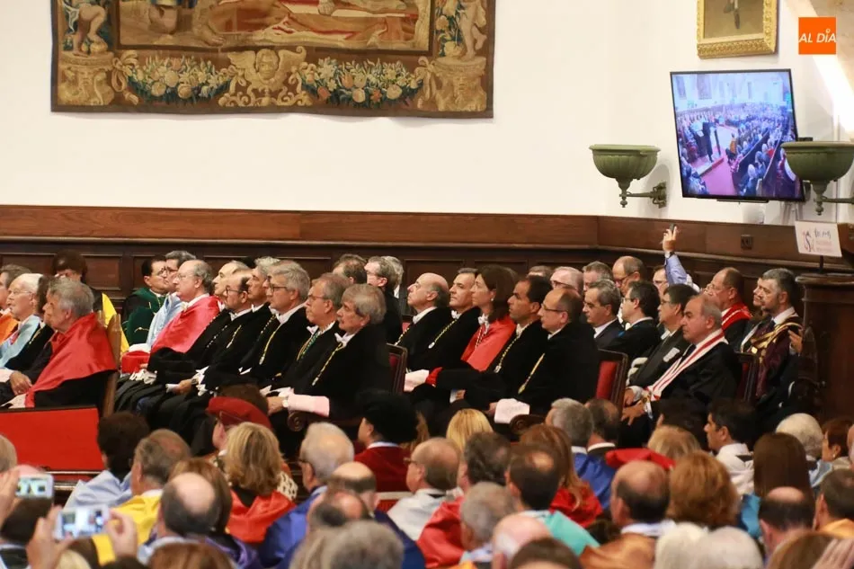 A este prestigioso acto académico acudían los Reyes de España, que presidieron la ceremonia, junto a autoridades nacionales, regionales o locales, como el ministro de Ciencia, Innovación y Universidades, Pedro Duque, el presidente de la Junta de Castilla y León, Juan Vicente Herrera, o el alcalde de Salamanca, Alfonso Fernández Mañueco, entre otros.
