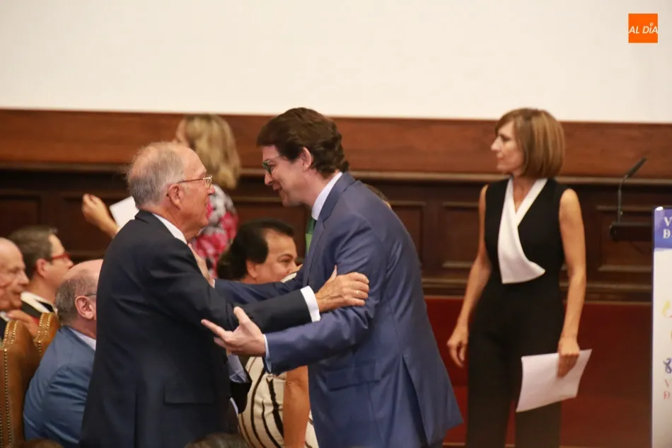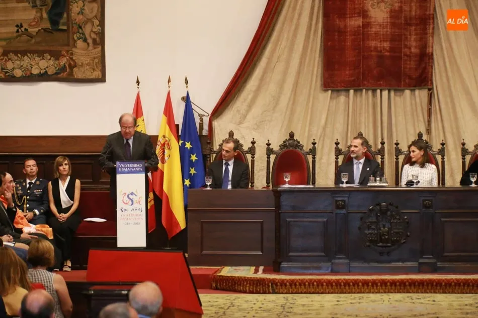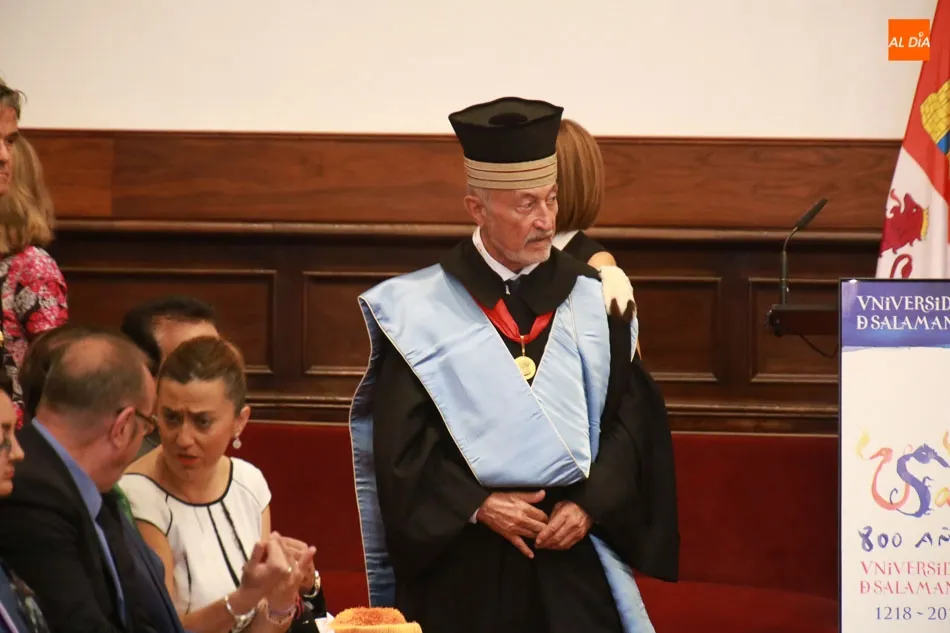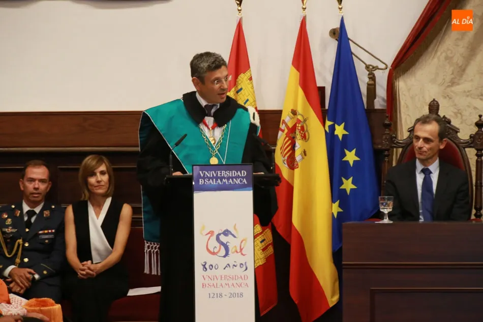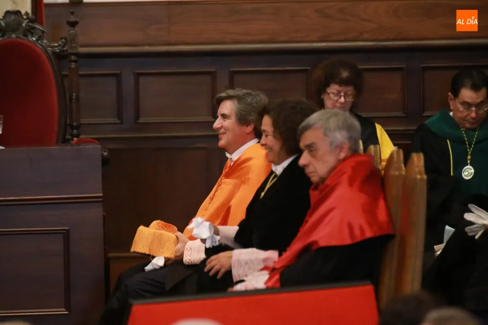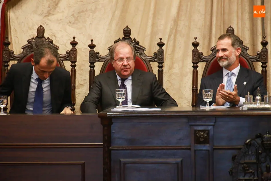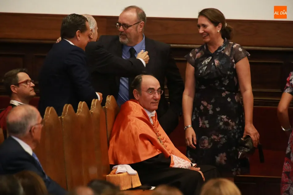 A este prestigioso acto académico acudían los Reyes de España, que presidieron la ceremonia, junto a autoridades nacionales, regionales o locales, como el ministro de Ciencia, Innovación y Universidades, Pedro Duque, el presidente de la Junta de Castilla y León, Juan Vicente Herrera, o el alcalde de Salamanca, Alfonso Fernández Mañueco, entre otros.