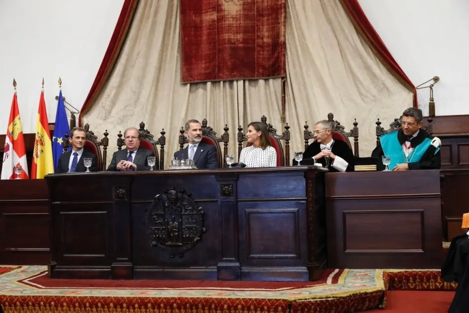 Los Reyes de España presidían este martes en Salamanca el solemne acto celebrado en el Paraninfo de la Universidad con motivo del 30 aniversario de la firma de la Magna Charta Universitatum. Los Reyes llegaban al Edificio Histórico al mediodía, después de la visita realizada al CLPU (Centro de Láseres Pulsados) en el Parque Científico de Villamayor.