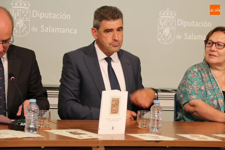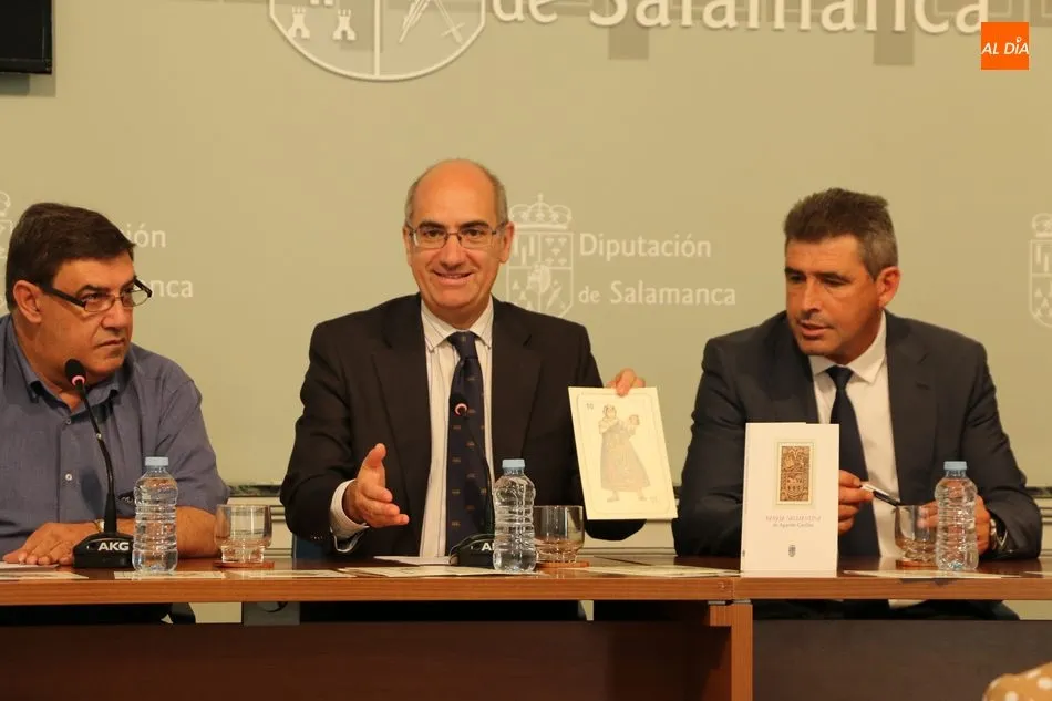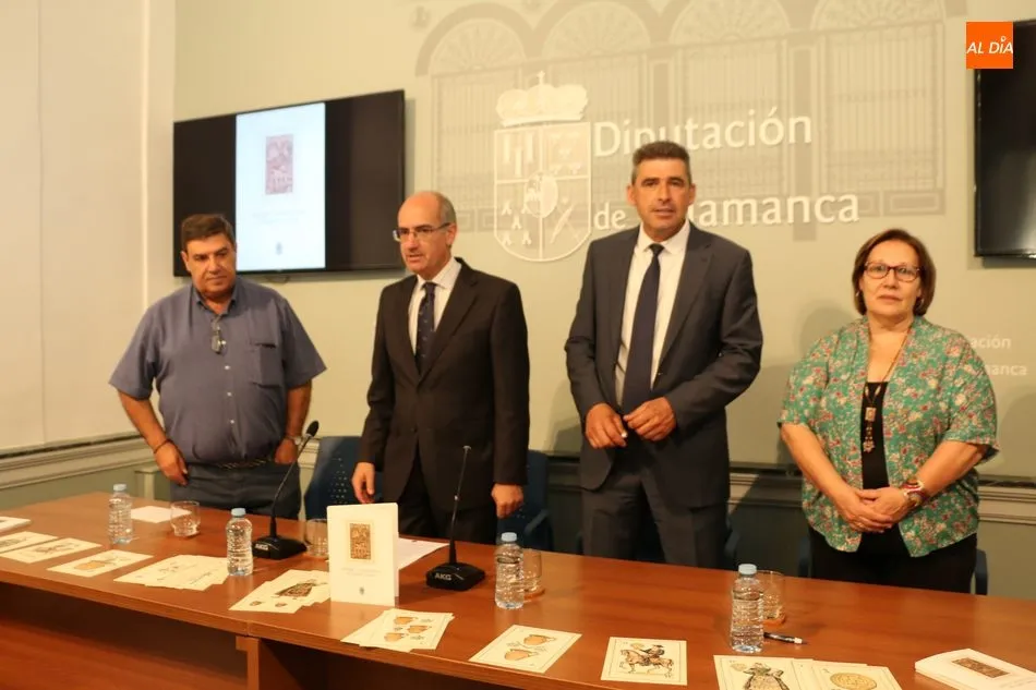 Este miércoles el presidente de la Diputación, Javier Iglesias, acompañado del diputado de Cultura, Julián Barrera, y los hijos del autor, Antonio y Lidia Casillas, presentaban en La Salina la primera baraja de cartas con motivos charros obra póstuma del escultor salmantino Agustín Casillas.