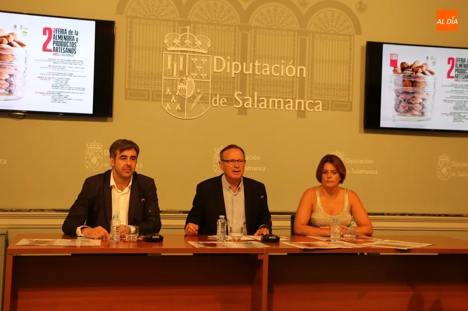 La presentación de esta segunda edición de la Feria del Almendra tenía lugar este miércoles en la Diputación de Salamanca con la presencia del diputado de Ferias Román Hernández, que acompañaba al alcalde de la localidad y a la concejala de este municipio Ana María Estévez.
