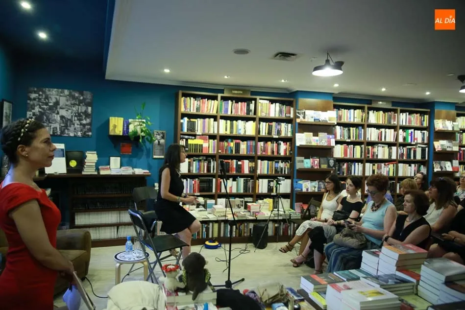 Carmen Borrego y yo entrevistamos a Catalina una tarde hermosa en la que hablamos de teatro, de mapas, de pasiones y de versos. Hoy, en otra hermosa tarde en el espacio de una librería, la escuchamos interpretar, sin escenario, sin apenas maquillaje, sin más recurso que su infinito talento, textos que hace suyos viviéndolos, regalándoles su voz y su entrega absoluta. Y la teoría se encarna, las ideas sobre la actuación toman cuerpo y se convierten en la experiencia portentosa de una actriz dueña de sus dones. En ella resuenan los ecos de la experiencia vicaria que el intérprete atesora para vivir y mostrar a un público maravillado. En ella volvemos a vivir la catarsis que debe provocar el teatro. A través de su voz habla la vida, esa vida que por unos minutos, vive el actor aunque no sea la suya. Porque hay algo que late y crece en su actuación con cada gesto, con cada palabra? y cuando esa vida enmudece solo queda aplaudir y maravillarse del arte del actor? aquel que nos engaña haciéndonos creer la ilusión de lo que no es.
