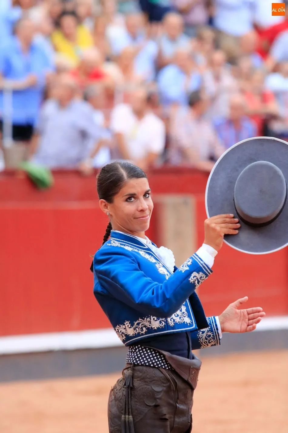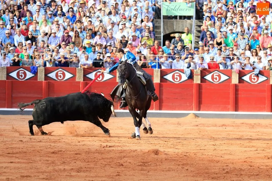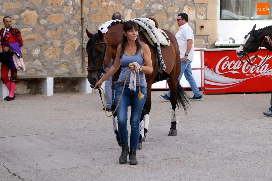 Lleva ya unos años viniendo a la feria la amazona francesa Lea Vicens realizo una monta de alta escuela parece que ha progresado bastante, pero aun realiza un toreo un tanto despegada, en la distancia, bien en el rejoncillo y con temple en banderillas también con las cortas estuvo acertada, mato a su primero de infame bajonazo, y aun así le concedieron un trofeo. En su segundo, clavo alejada de la reunión, pero con banderillas y al quiebro logro buenos pares arriba, algo más relajada y más experimentada, manejo con ritmo a sus caballos siempre un tanto forzada, se le nota al coger el rejón de muerte, con el que dio todo un curso de despropósitos clavando una y otra vez hasta conseguir uno entero trasero que puso fin al animal, pues, ver para creer hubo petición poca pero la hubo, y esto roza lo verbenero. Luego se escucharon palmas también en la despedida.