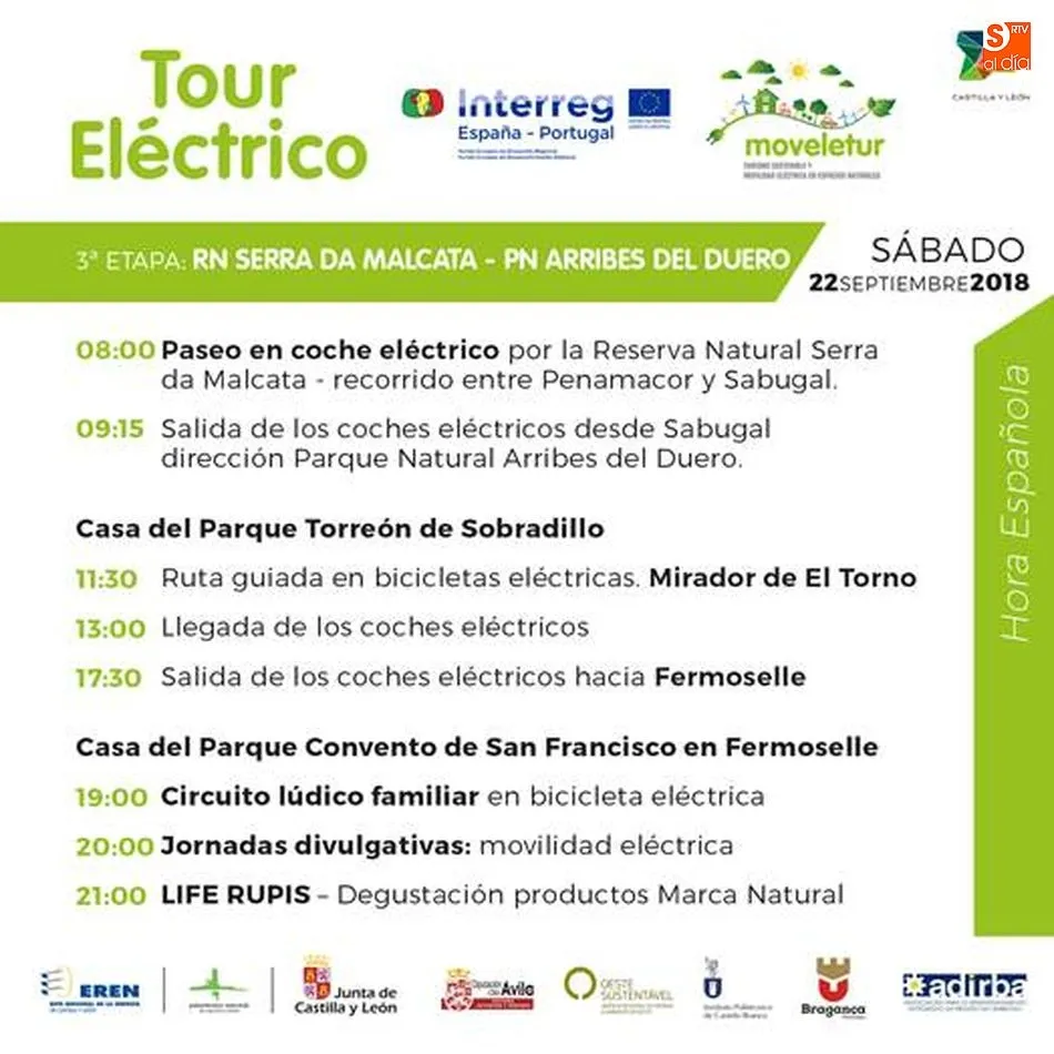 Sobradillo acoge mañana sábado una jornada de ?promoción de la movilidad eléctrica en espacios naturales protegidos?, concretamente la tercera etapa del Tour Eléctrico que está recorriendo espacios naturales de Portugal y Castilla y León, una actividad incluida en el marco del programa de Cooperación Transfronteriza España-Portugal Interreg Poctep.