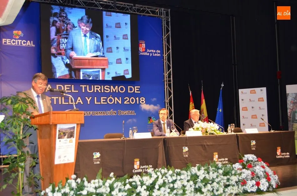 El director de Fecitcal ha comenzado su intervención en la inauguración de este evento manifestando su ?malestar, repulsa e indignación? por la ausencia de la Consejera de Cultura y Turismo en esta edición del Día del Turismo de Castilla y León, y después ha dado comienzo a su intervención, como entidad organizadora, manifestando la importancia de las nuevas tecnologías que brindan oportunidades de innovación. Ha señalado que el Día Mundial del Turismo ayudará a poner de manifiesto las oportunidades de desarrollo sostenible que representan para el turismo los avances tecnológicos, como la integración de datos, la inteligencia artificial y las plataformas digitales. Y ha citado a la Organización Mundial del Turismo, que considera que los avances digitales y la innovación forman parte de la respuesta al desafío de compaginar el conocimiento continuo con la mayor sostenibilidad y responsabilidad del sector turístico.