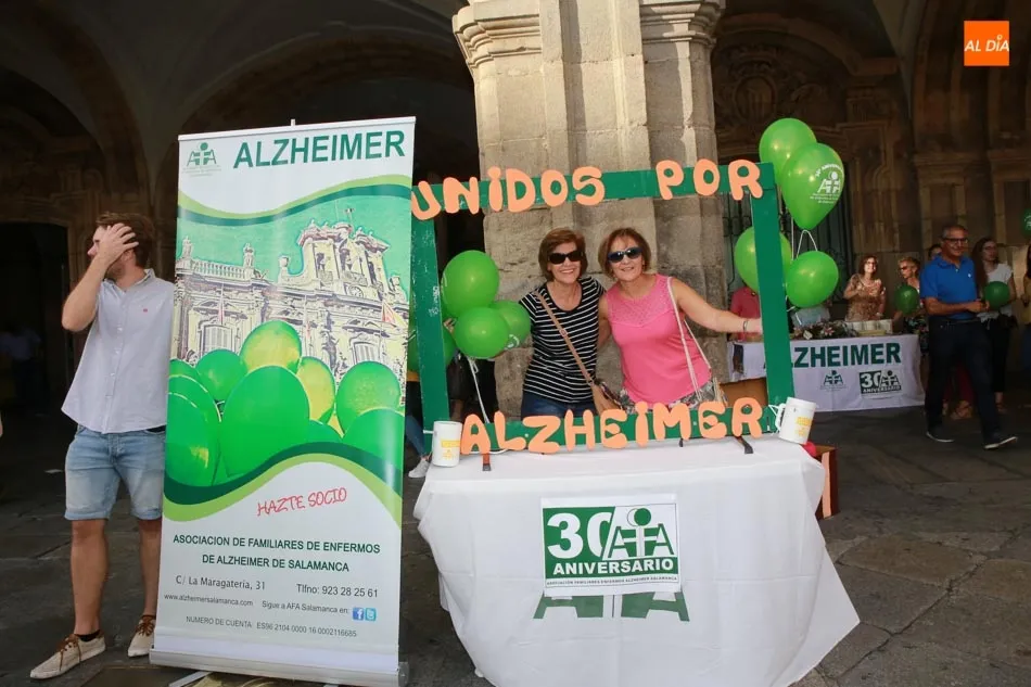 Con motivo del Día Mundial de Alzheimer, AFA Salamanca (Asociación de Familiares de Enfermos de Alzheimer) organizaba esta tarde un acto reivindicativo en la Plaza Mayor. Durante toda la jornada se ha desarrollado una cuestación con mesas en distintos lugares de la ciudad, y a las 19 horas, en el ágora, tenía lugar la suelta de 1.000 globos y la actuación del Club de Twirling de Carbajosa. Además, ha contado con la colaboración del Grupo Joven Pizarrales.