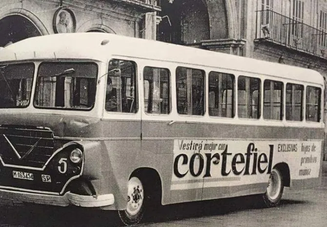Aunque menos elaborada y colorida, como hoy día la conocemos, en estos medios de transporte esta forma de hacer publicidad ya existía en tiempos pasados, muestra de ello es la imagen adjunta de los años 60 donde un autobús que circula por la plaza Mayor de Salamanca lleva impresa la propaganda de la famosa tienda Cortefiel.