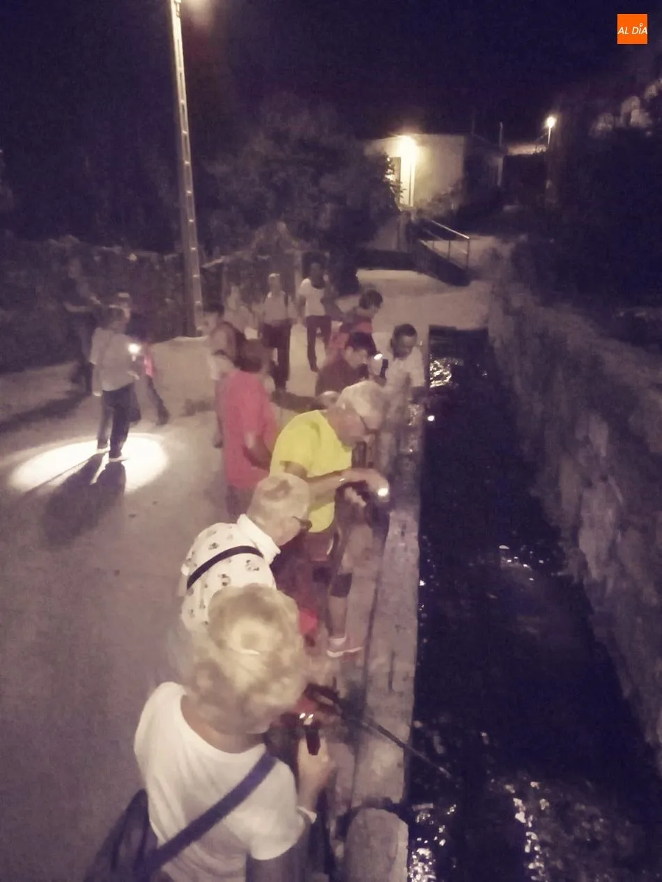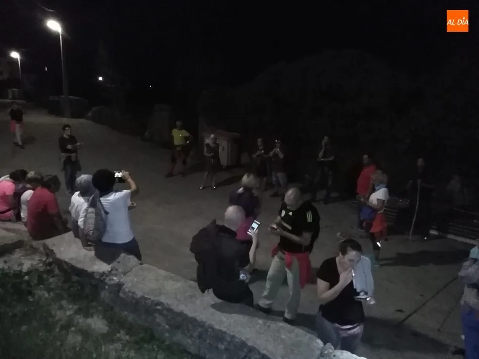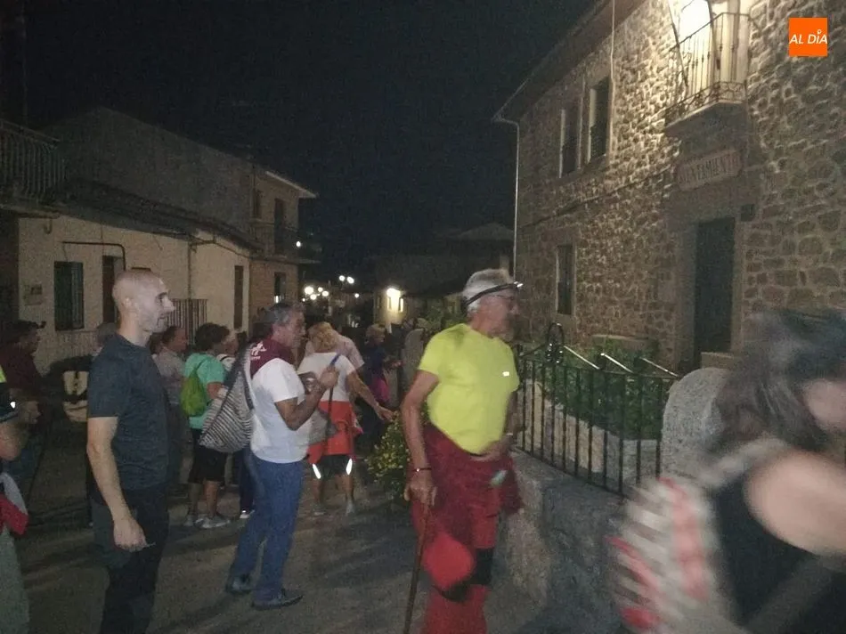 A continuación se cenó, y se dispusieron todos a afrontar la ruta nocturna, que se tuvo salida y llegada en el propio Valdefuentes, con unos cinco kilómetros de recorrido, que se cubrieron en torno a hora y media. La caminata contó con la ayuda del funcionario local Emiliano Domínguez, quien marcó el camino a seguir. Antes de medianoche regresaron los caminantes a los salones cedidos por el Ayuntamiento para la ocasión.