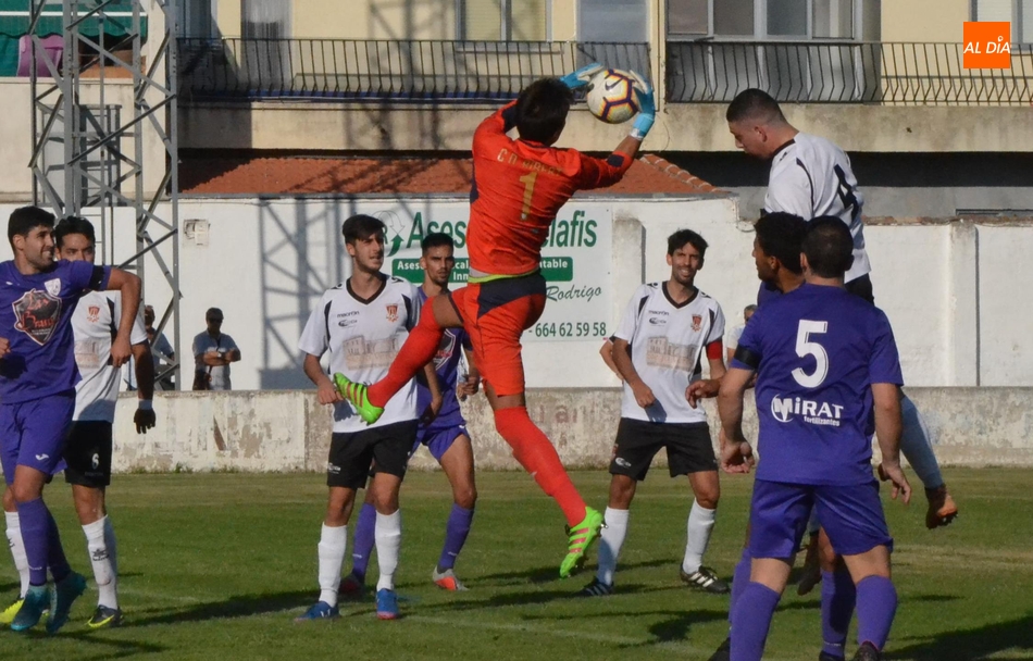 El Ciudad Rodrigo fue igualando el partido, aunque la primera ?intentona? local no llegó hasta el 26?, con un disparo dentro del área de Manu Blanco que se topó con un defensa. Tres minutos después lo probó desde lejos Maza, yéndose el balón un poco desviado al lado del palo izquierdo. La única ocasión como tal del Ciudad Rodrigo en este período se produjo en el 38?: un disparo también desde fuera del área de Manu González que el portero cogió a media altura en dos tiempos.