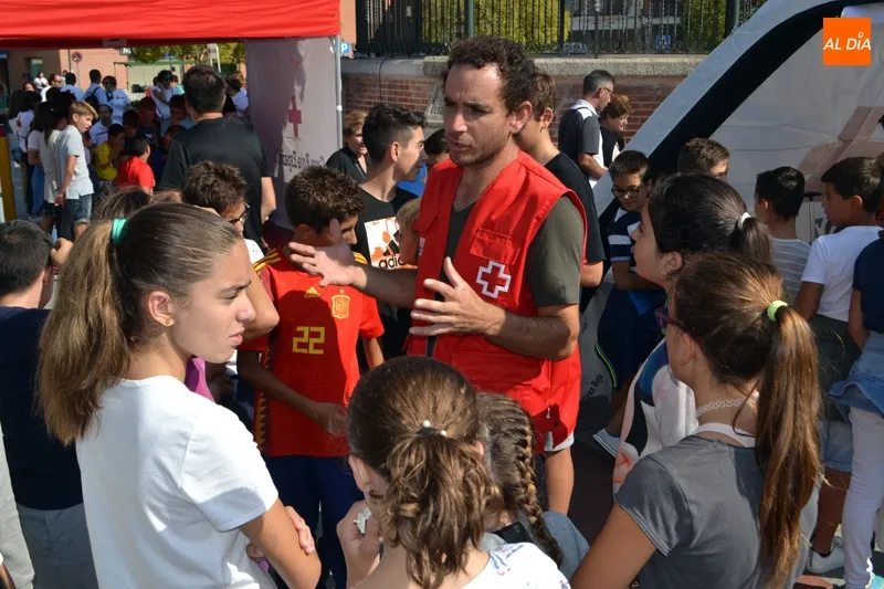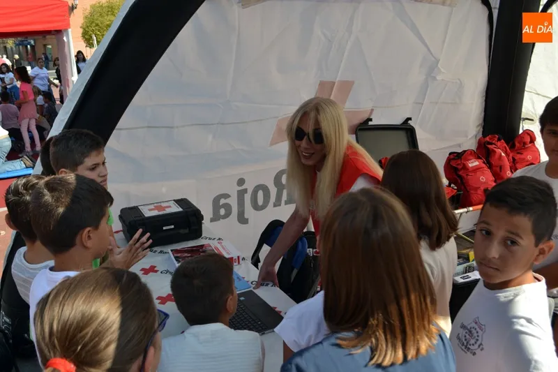 Los escolares de los diferentes colegios de Peñaranda han participado este jueves en la gran exhibición que Cruz Roja ha realizado en la Plaza de España para conmemorar el Día Mundial de los Primeros Auxilios.