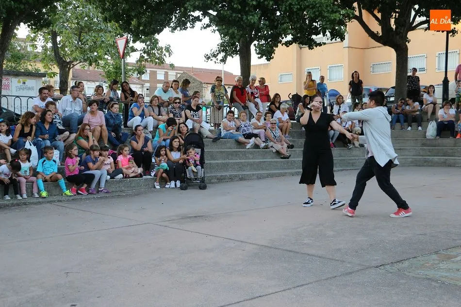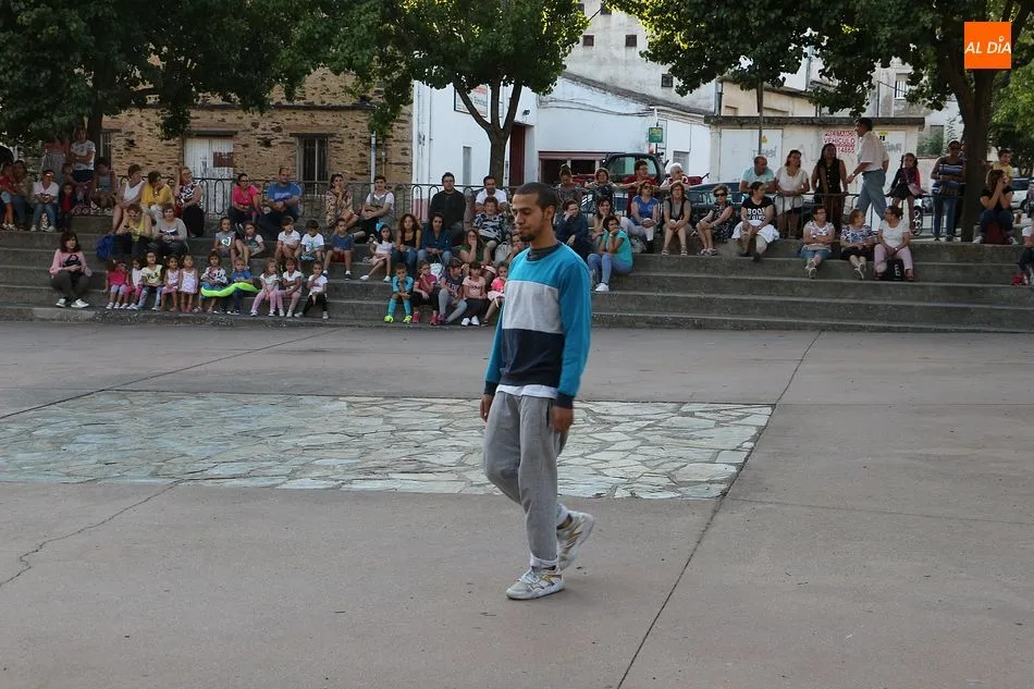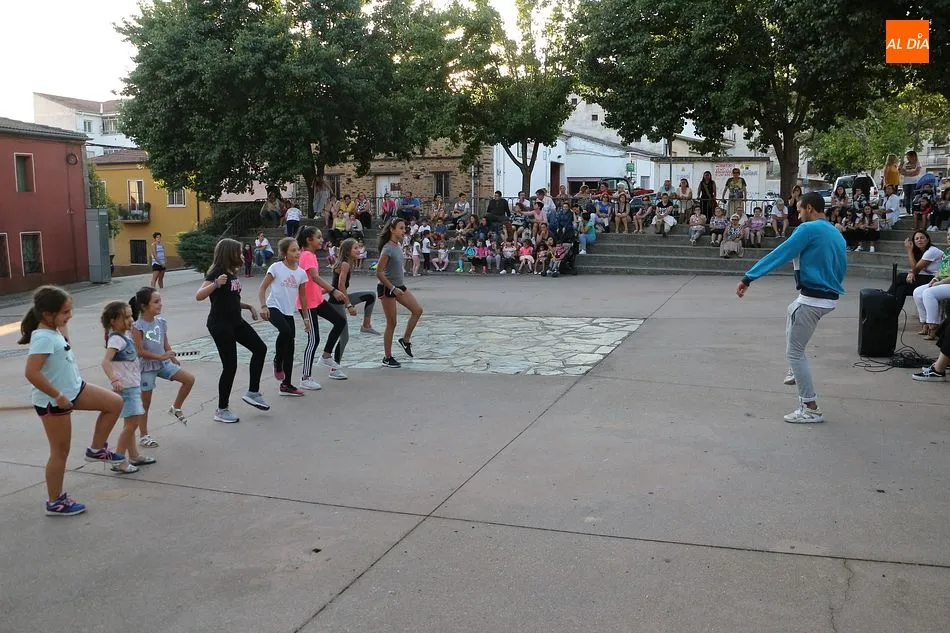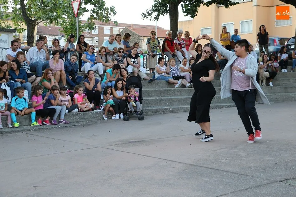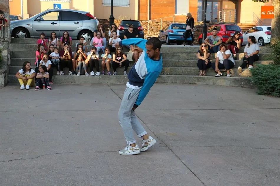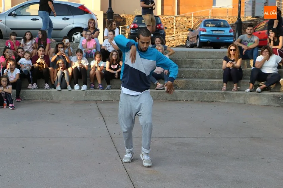 La Escuela de Baile de Guijuelo cuenta con nuevos profesores en este curso, y para demostrar sus capacidades, así como para dar una muestra de lo que se puede aprender en las clases, se ofreció una exhibición en la plaza de Castilla y León.