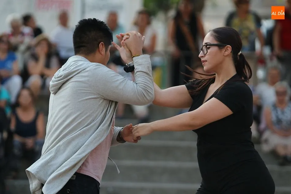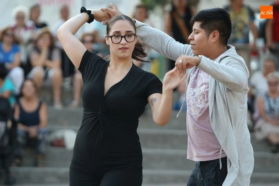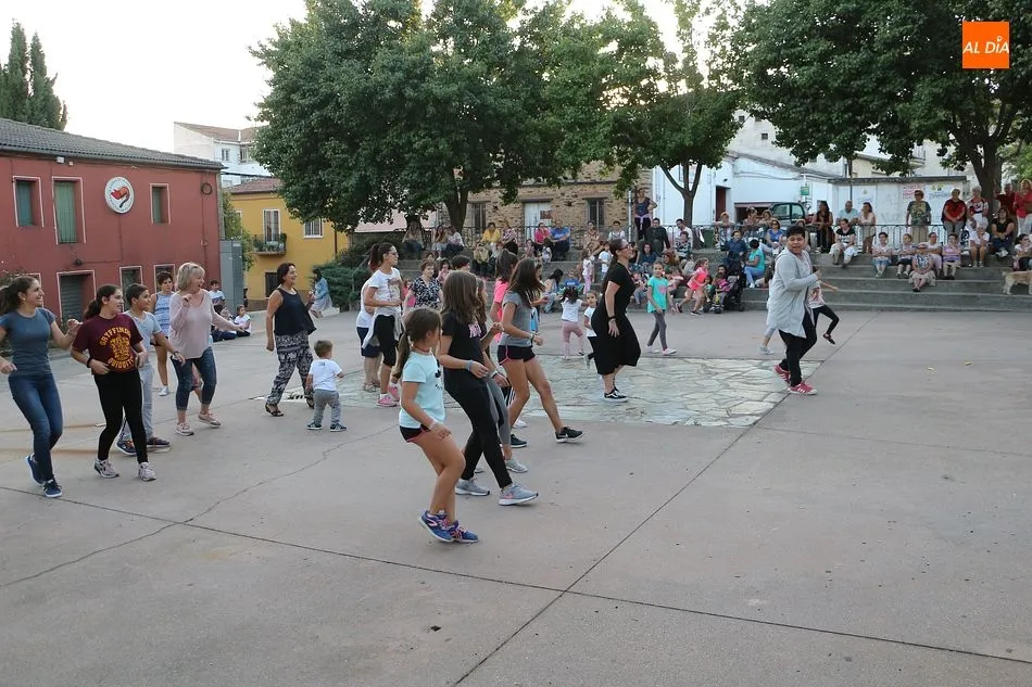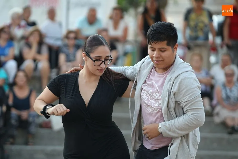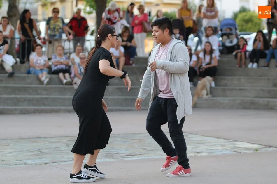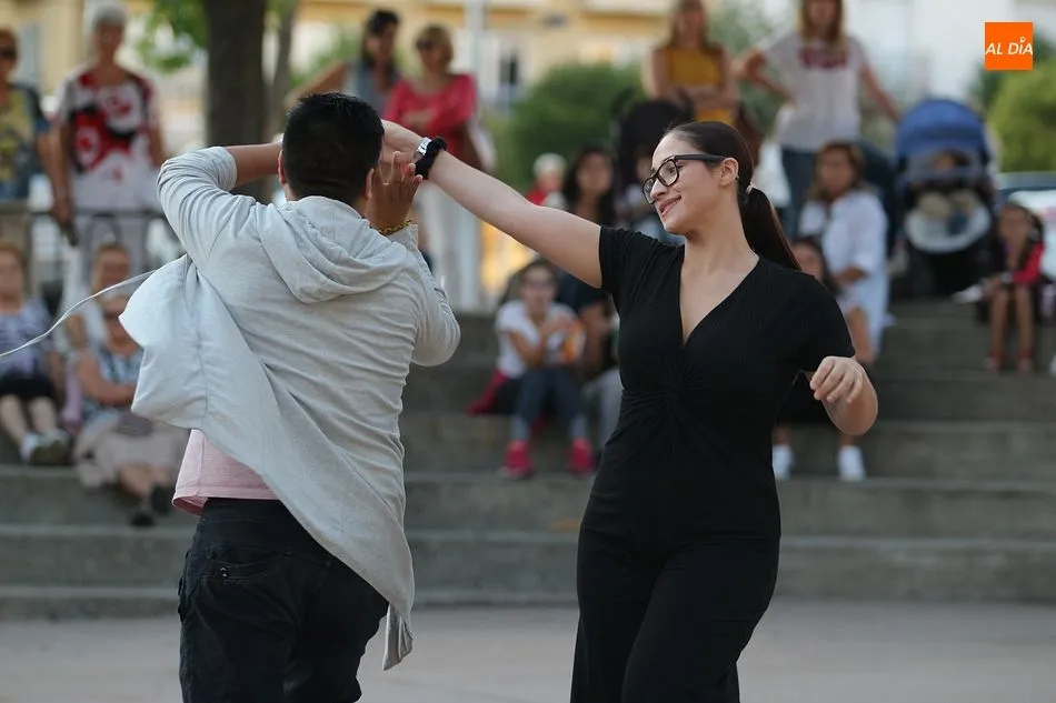 La Escuela de Baile de Guijuelo cuenta con nuevos profesores en este curso, y para demostrar sus capacidades, así como para dar una muestra de lo que se puede aprender en las clases, se ofreció una exhibición en la plaza de Castilla y León.
