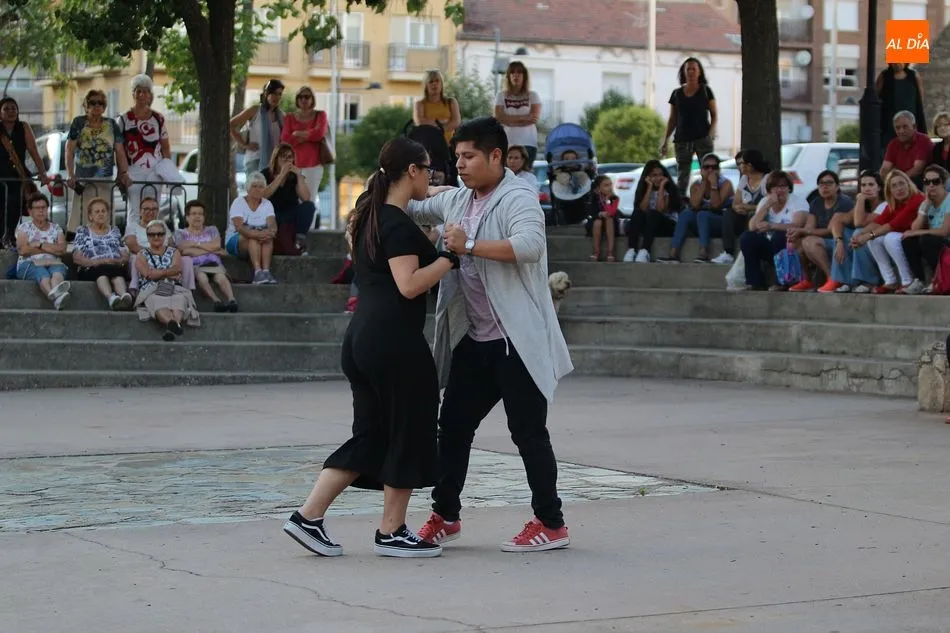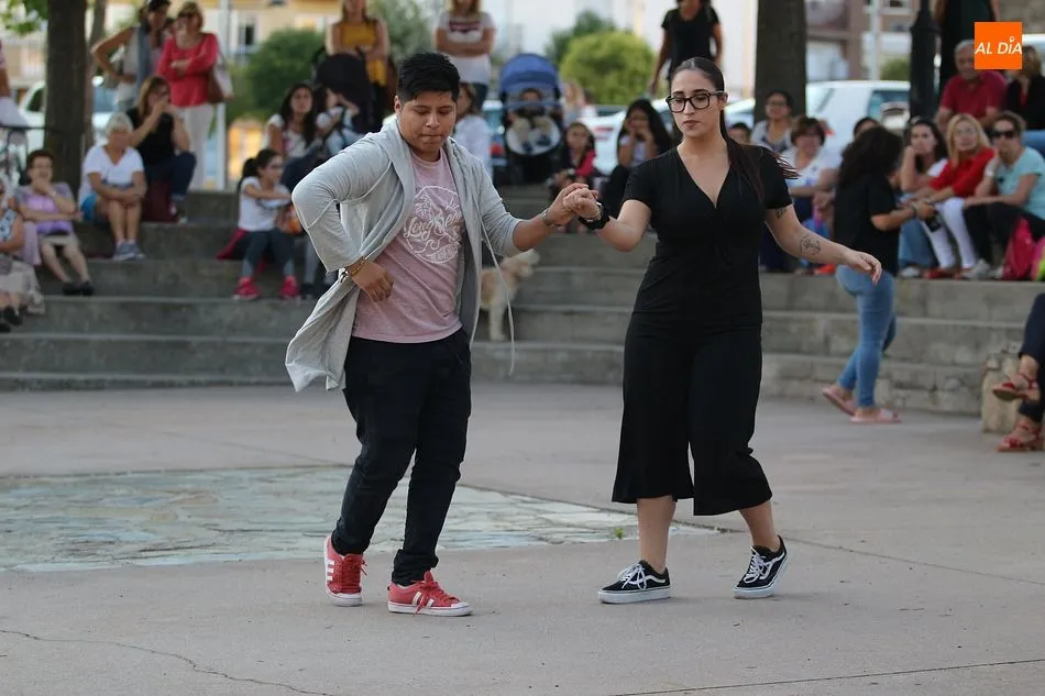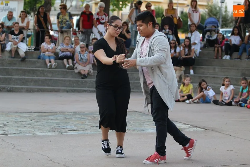 GUIJUELO | Los nuevos profesores de la escuela, Otman Hijaoui y Paul Prado hicieron junto a Amy Hernández una demostración de baile moderno, latino y de salón ante numerosos vecinos