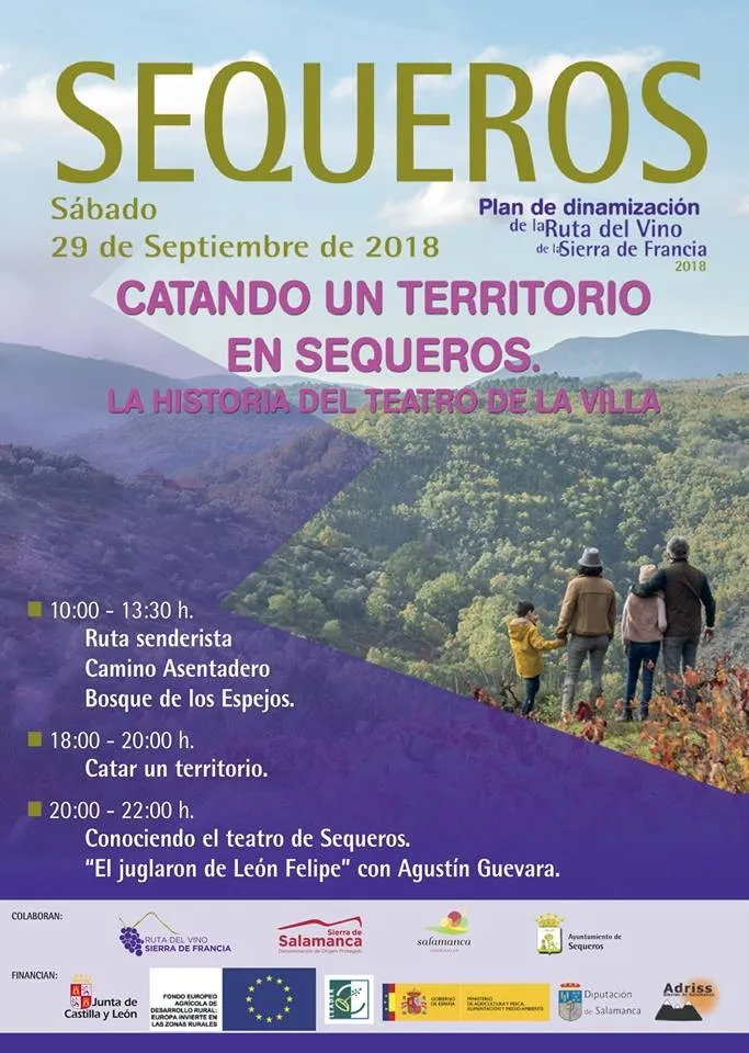 Las actividades seguirán a las 18.00 horas con la ya habitual propuesta de ?Catar un territorio?, se trata de una experiencia gastronómica y cultural en la que el público prueba el vino de la Denominación de Origen Sierra de Salamanca, entre otros productos típicos, así como aprenden detalles sobre su elaboración y la historia de la comarca y sus gentes. A las 20.00 horas se ofrecerá la función teatral ?El Juglarón de León Felipe?, en el propio teatro de la localidad con la participación de Agustín Guevara.