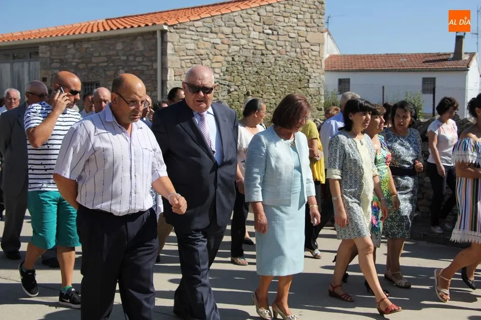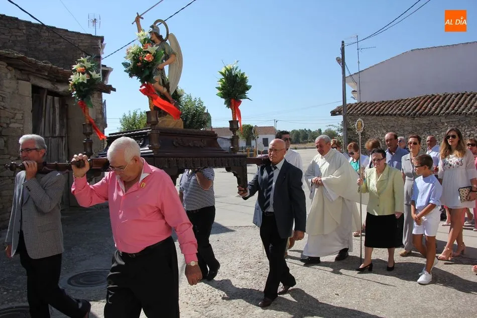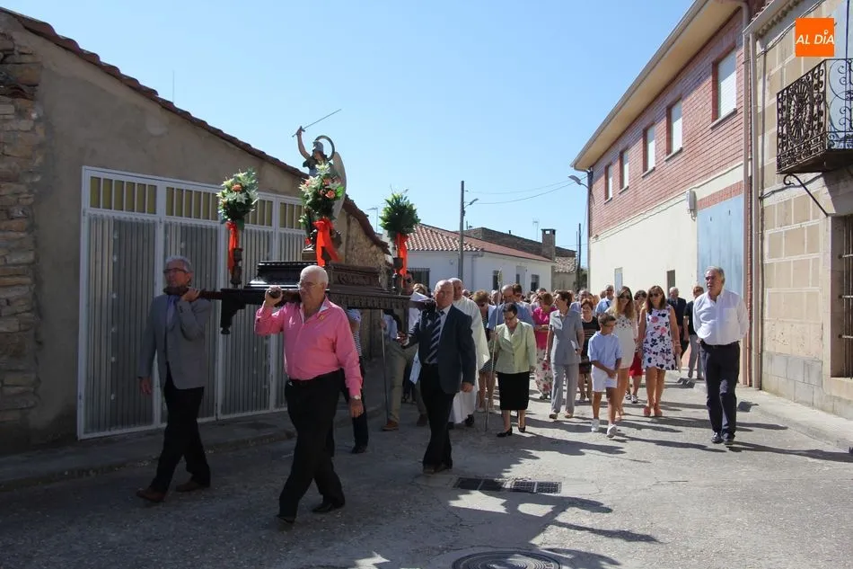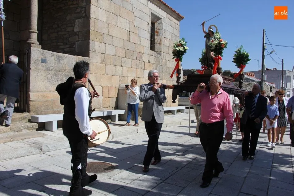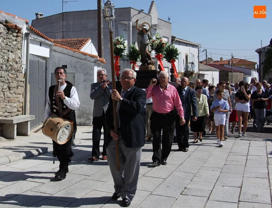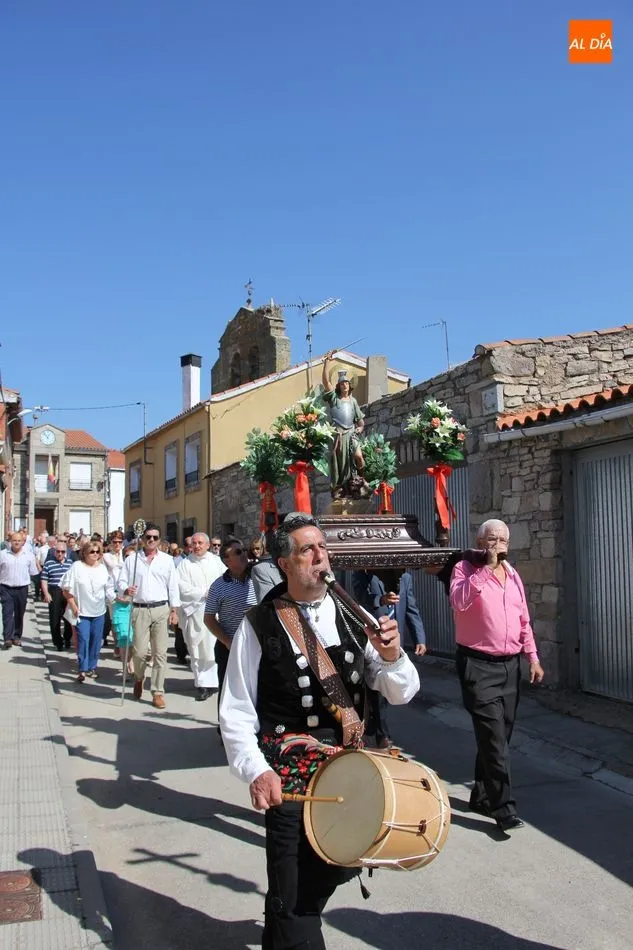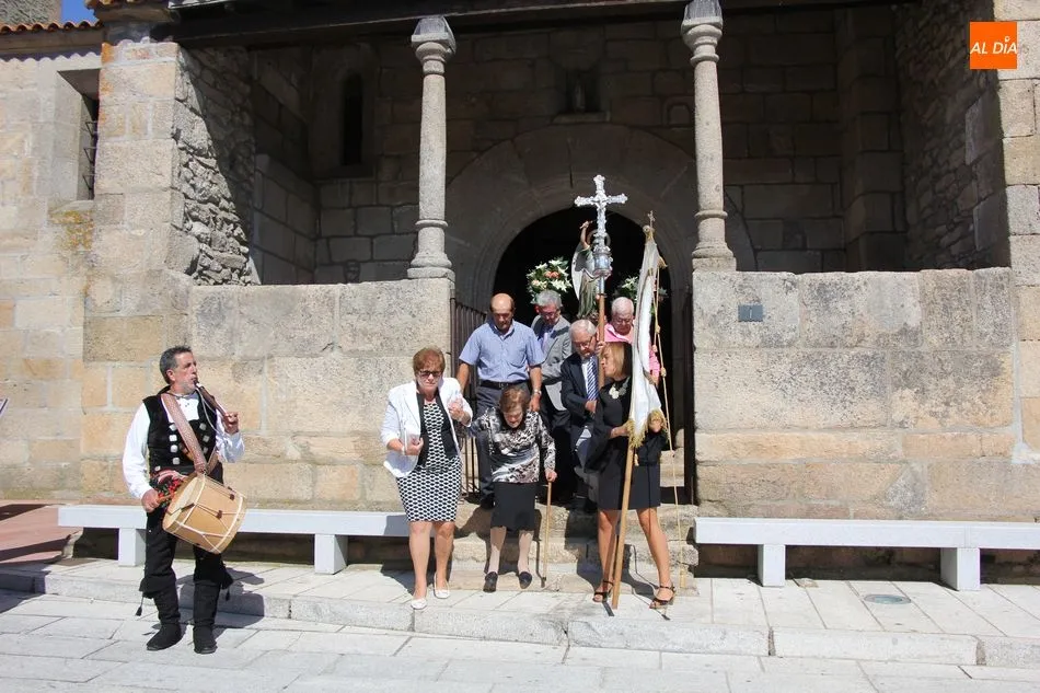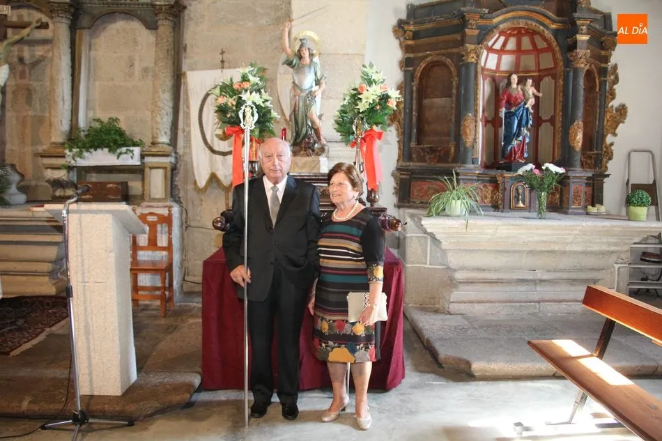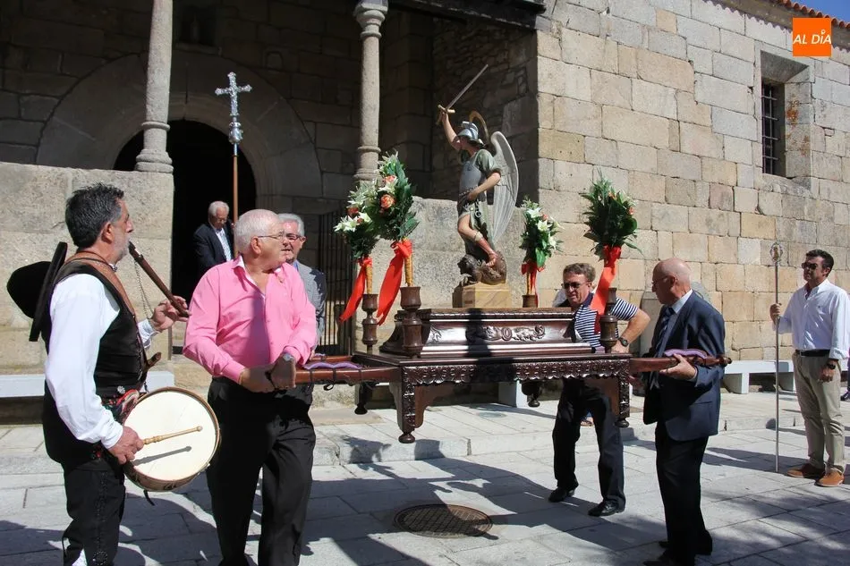 Presididos por el alcalde, Alejandro Benito, y María Antonia Herrero, concejal tesorera, en calidad de mayordomos, los vecinos de Almendra celebraban la mañana de este sábado los actos religiosos en honor a San Miguel, fiestas que en este día grande comenzaban con la Misa Mayor en honor al Patrón oficiada por el párroco José Ramón Mateos y la procesión del arcángel, por las calles de la localidad, bajo los sones de la gaita y el tamboril de Javier Rodríguez ?El Pardal?.