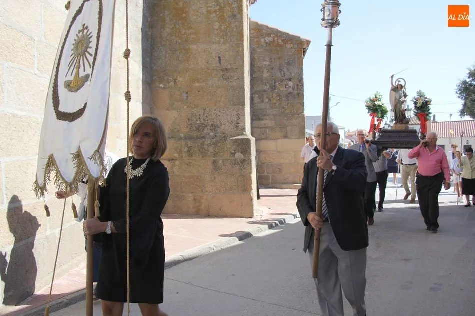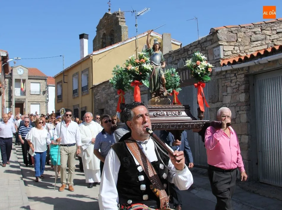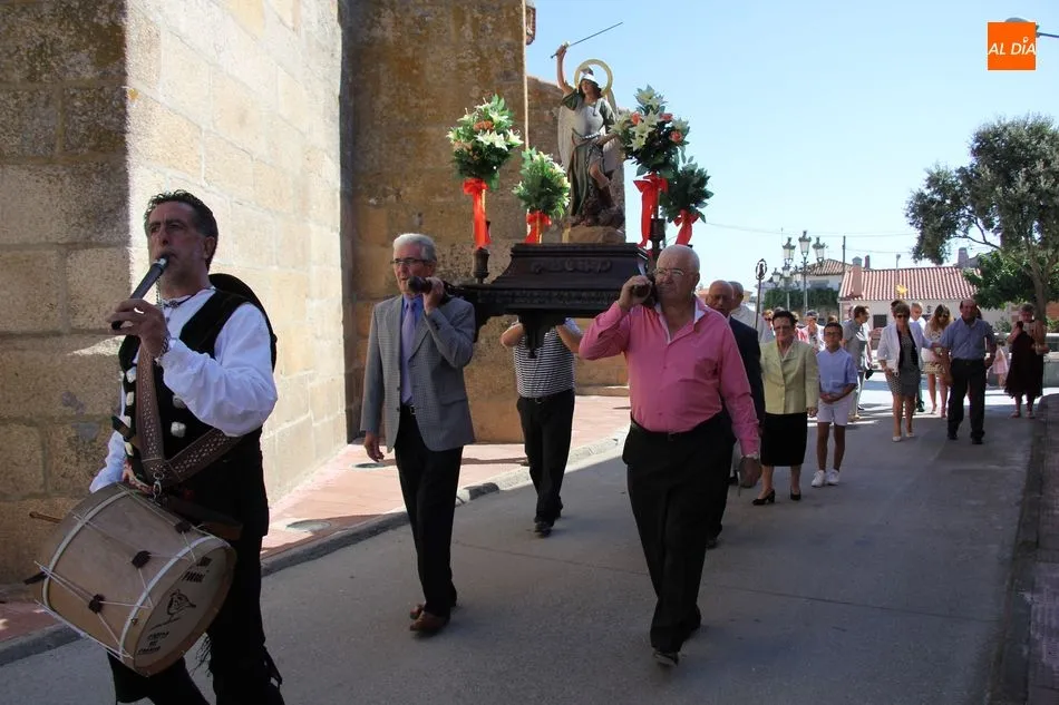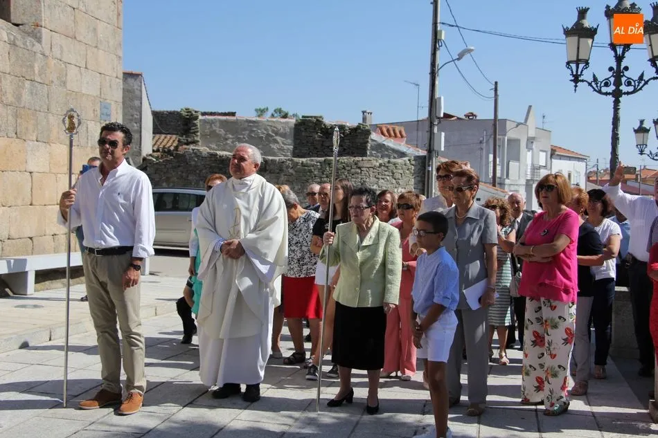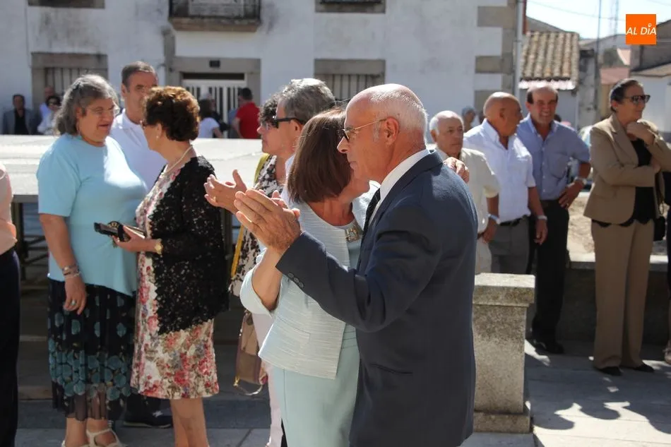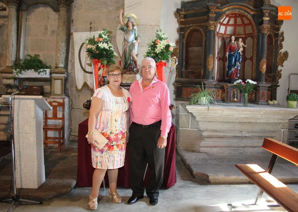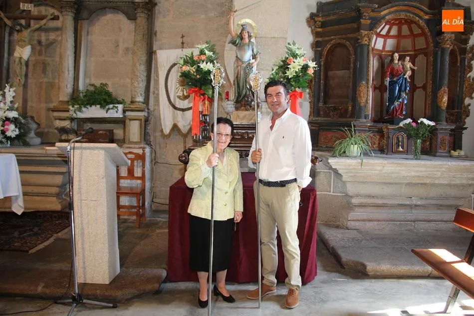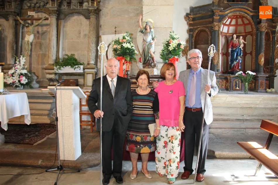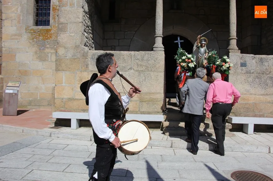 Presididos por el alcalde, Alejandro Benito, y María Antonia Herrero, concejal tesorera, en calidad de mayordomos, los vecinos de Almendra celebraban la mañana de este sábado los actos religiosos en honor a San Miguel, fiestas que en este día grande comenzaban con la Misa Mayor en honor al Patrón oficiada por el párroco José Ramón Mateos y la procesión del arcángel, por las calles de la localidad, bajo los sones de la gaita y el tamboril de Javier Rodríguez ?El Pardal?.