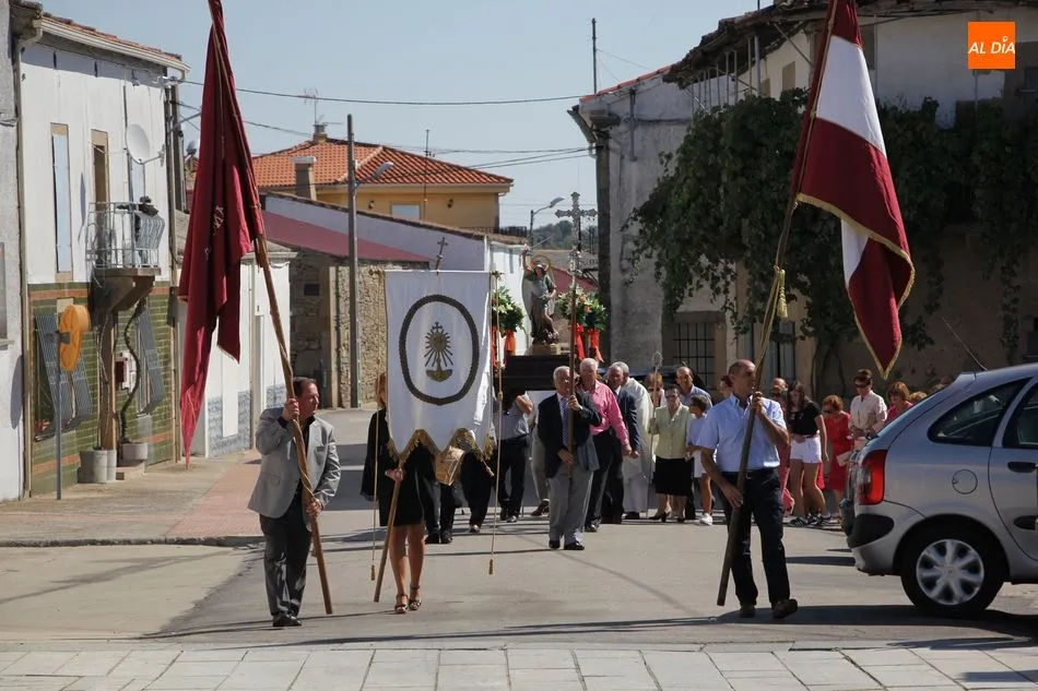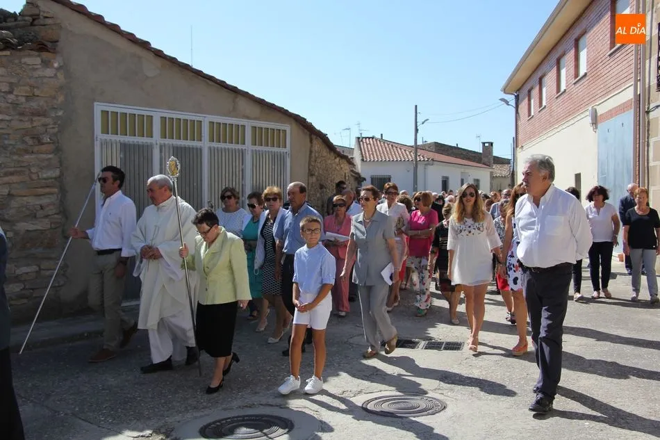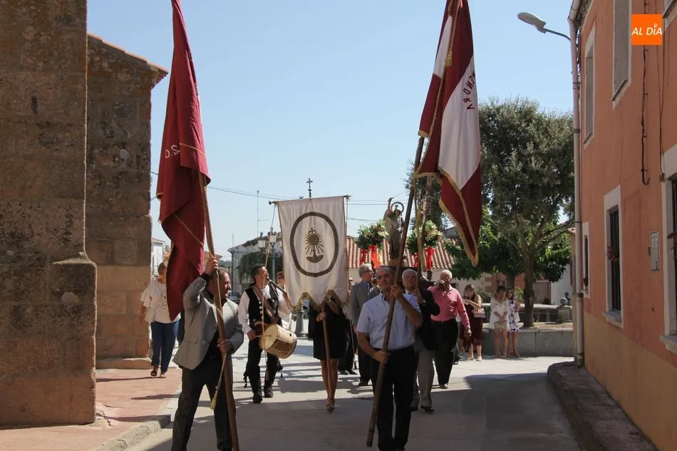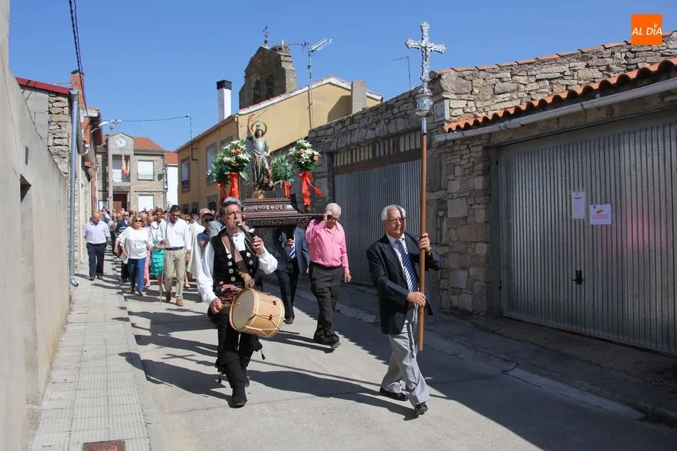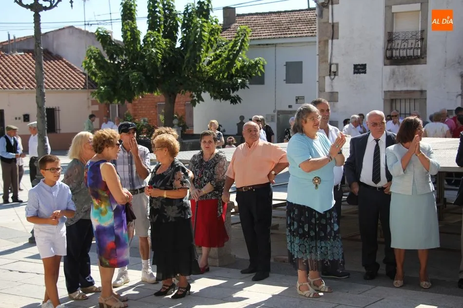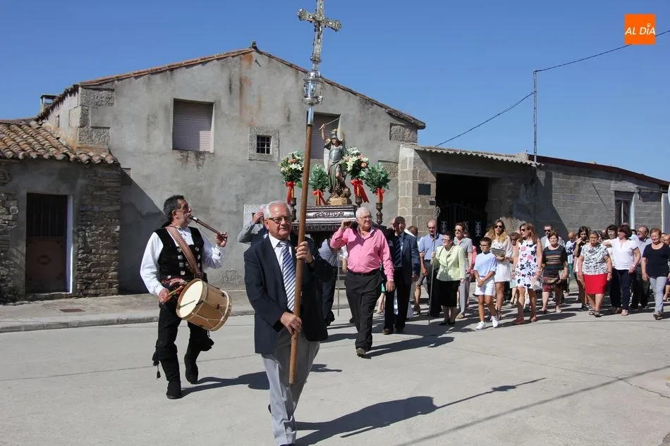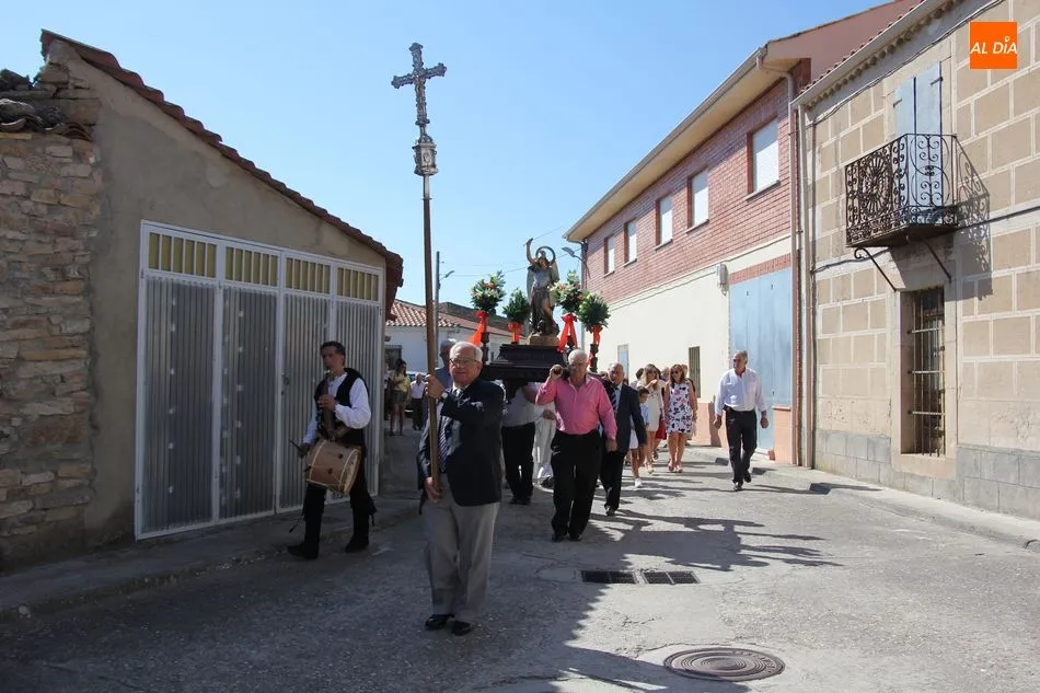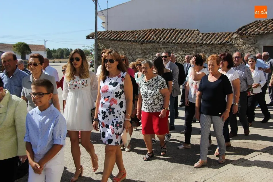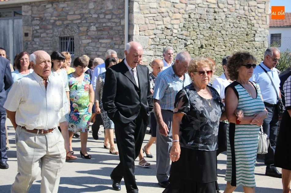 Presididos por el alcalde, Alejandro Benito, y María Antonia Herrero, concejal tesorera, en calidad de mayordomos, los vecinos de Almendra celebraban la mañana de este sábado los actos religiosos en honor a San Miguel, fiestas que en este día grande comenzaban con la Misa Mayor en honor al Patrón oficiada por el párroco José Ramón Mateos y la procesión del arcángel, por las calles de la localidad, bajo los sones de la gaita y el tamboril de Javier Rodríguez ?El Pardal?.