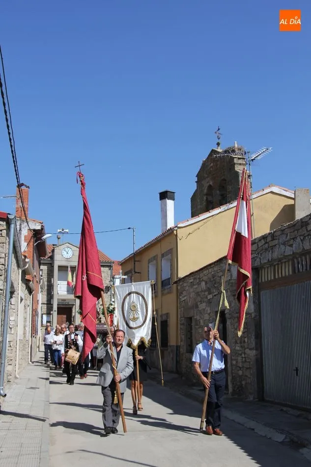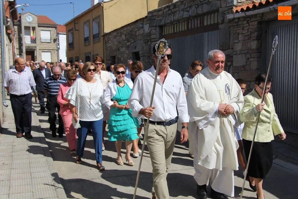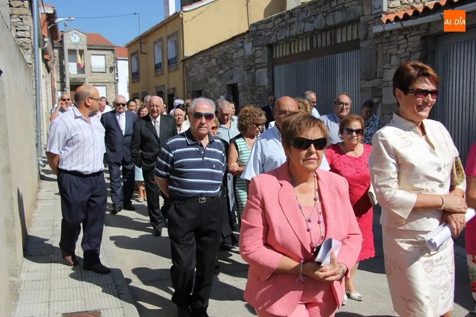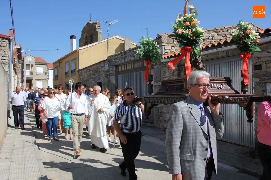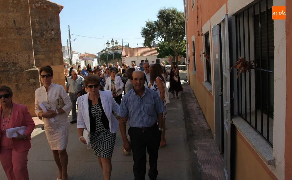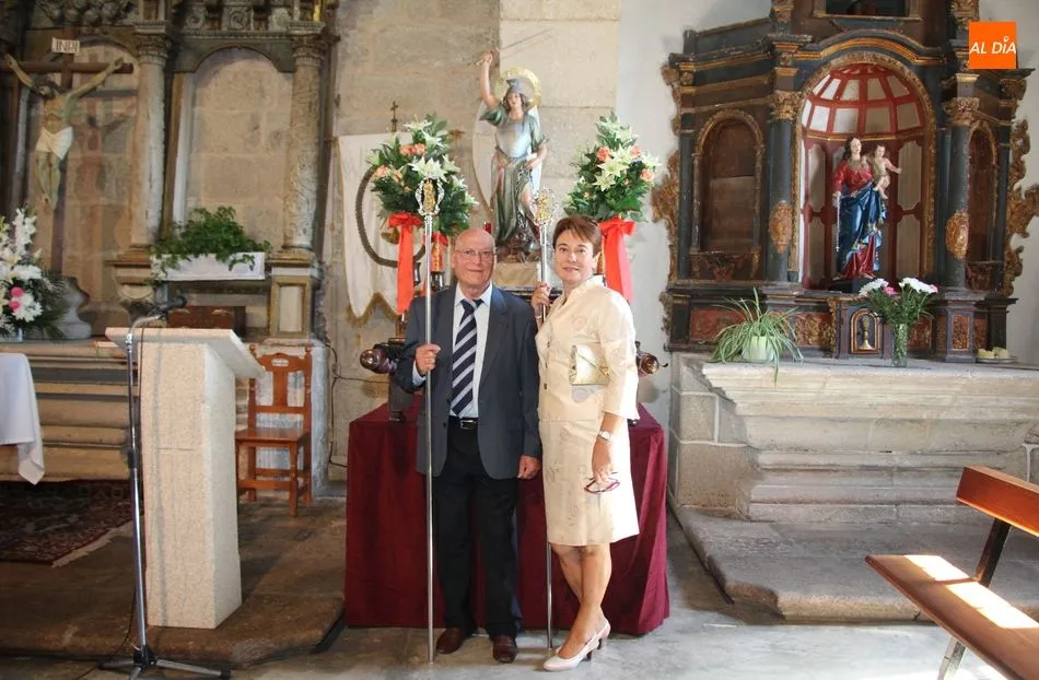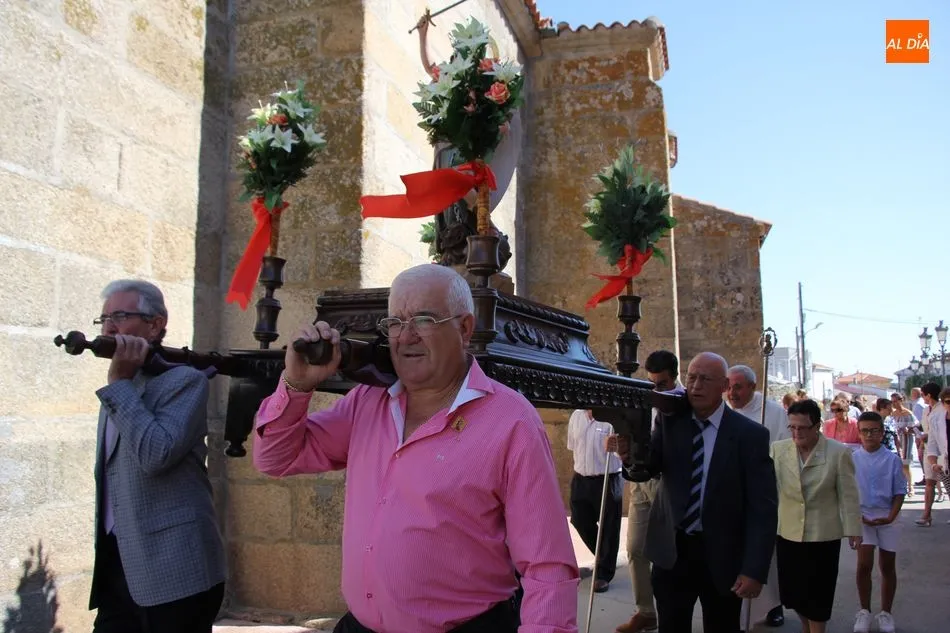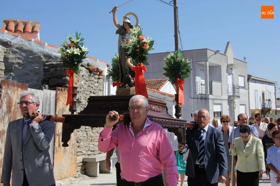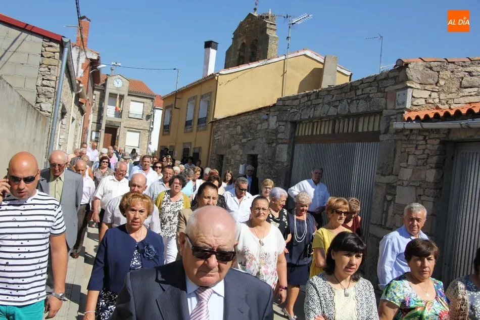 Presididos por el alcalde, Alejandro Benito, y María Antonia Herrero, concejal tesorera, en calidad de mayordomos, los vecinos de Almendra celebraban la mañana de este sábado los actos religiosos en honor a San Miguel, fiestas que en este día grande comenzaban con la Misa Mayor en honor al Patrón oficiada por el párroco José Ramón Mateos y la procesión del arcángel, por las calles de la localidad, bajo los sones de la gaita y el tamboril de Javier Rodríguez ?El Pardal?.