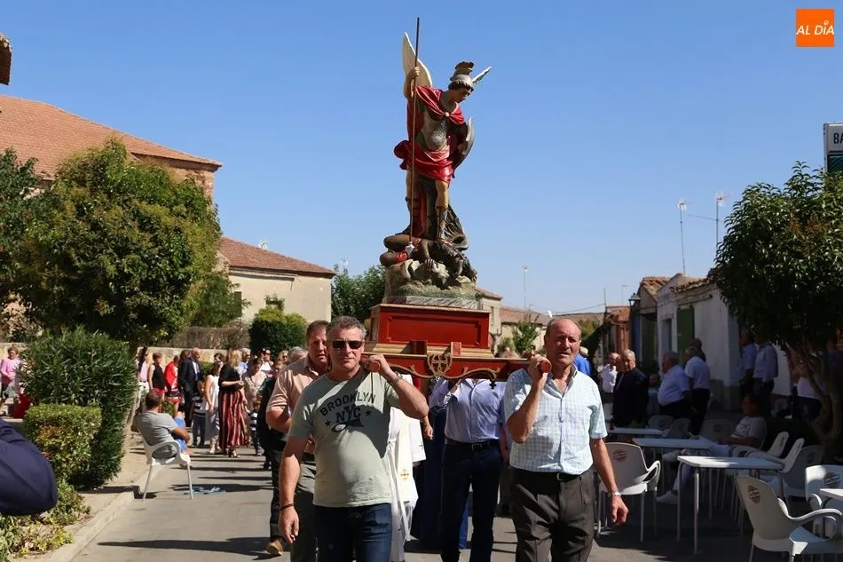 Los vecinos de Tarazona de Guareña han participado este sábado en los actos religiosos en honor a San Miguel Arcángel, patrón de la localidad. A las 12 horas comenzaba la misa, que estuvo amenizada por la música del grupo Arena. A continuación, los asistentes salieron a la calle para la celebración de la procesión.