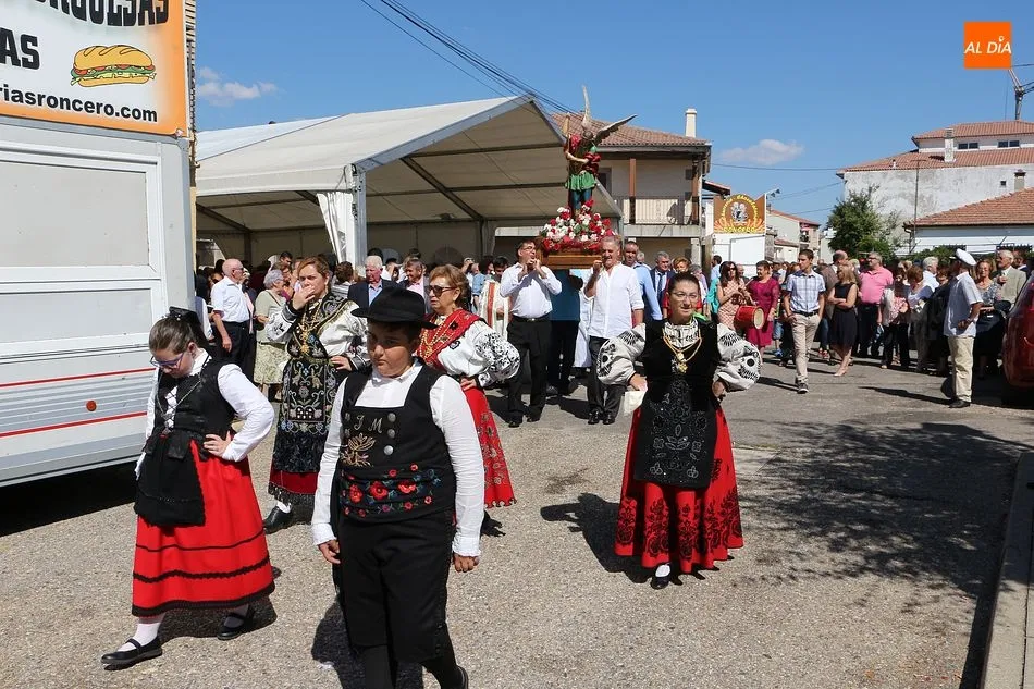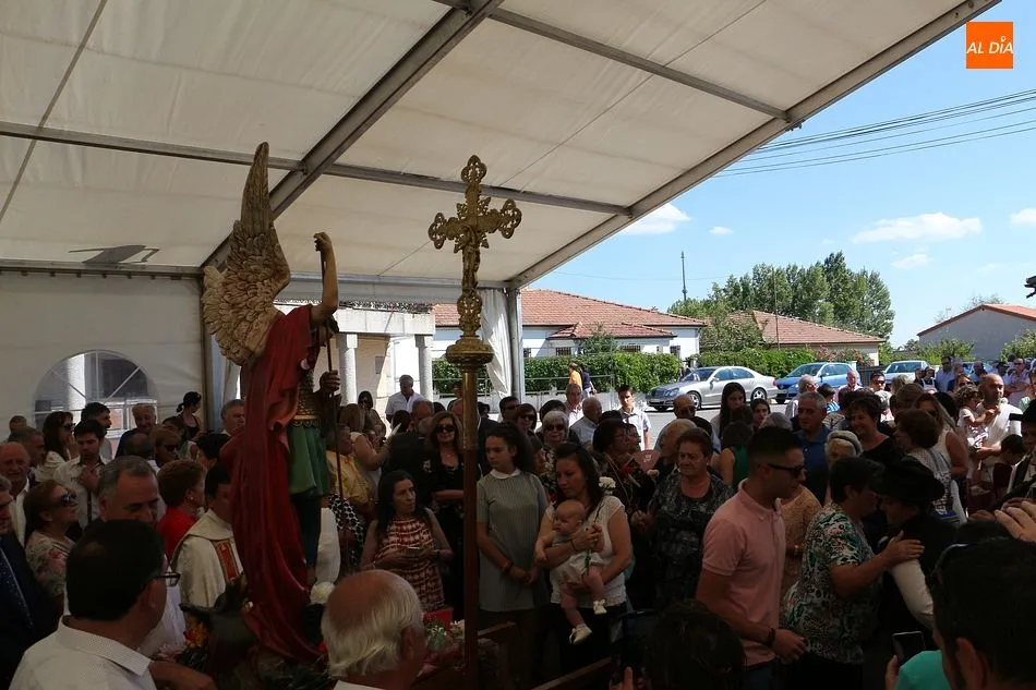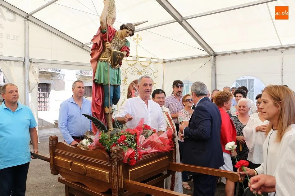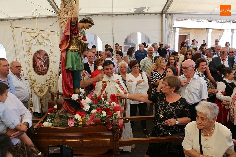 San Miguel de Valero se ha vestido de fiesta hoy con la celebración de su día grande en honor al patrón, San Miguel. La iglesia ha acogido la solemne misa con el templo lleno de público, a la que ha seguido el tradicional ofertorio en la carpa municipal de la plaza. Bailes típicos al son de la gaita y el tamboril. El salón municipal acogió a continuación un convite con productos típicos para todos los presentes.