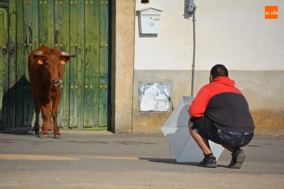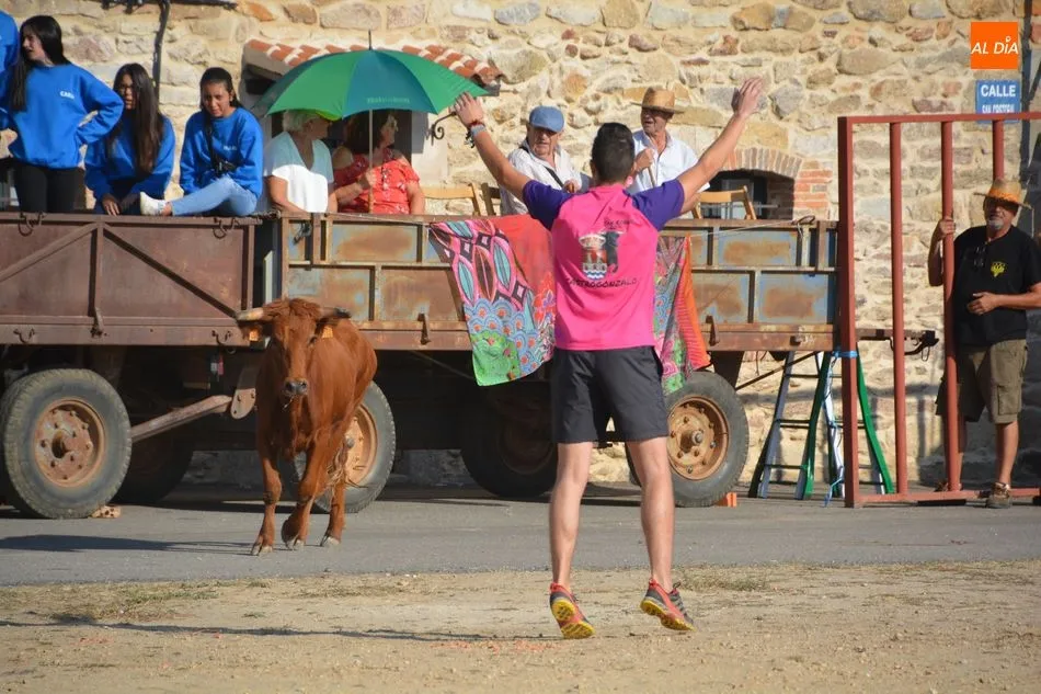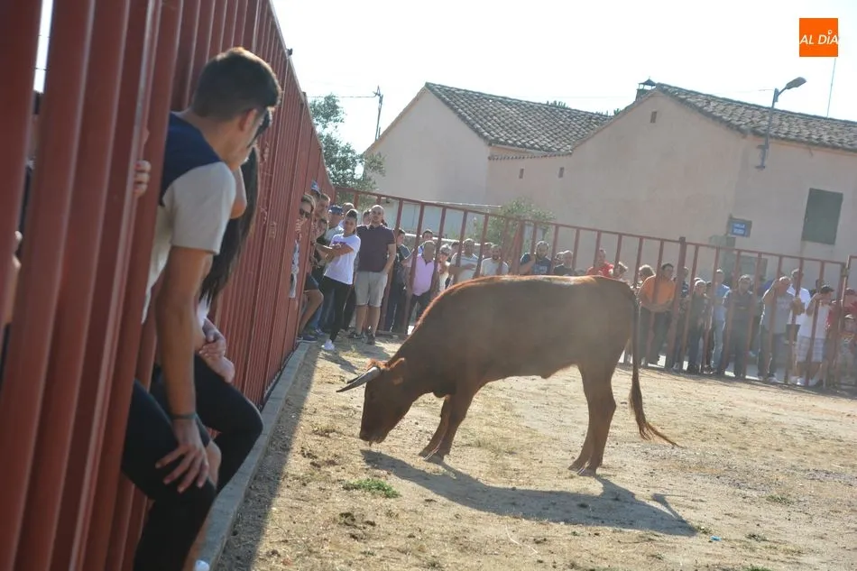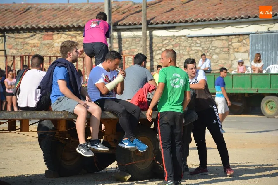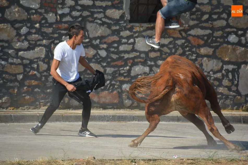 A las 11:00 h comenzaba el festejo taurino con la suelta de dos vacas y un novillo y los mozos preparados para cortarlos