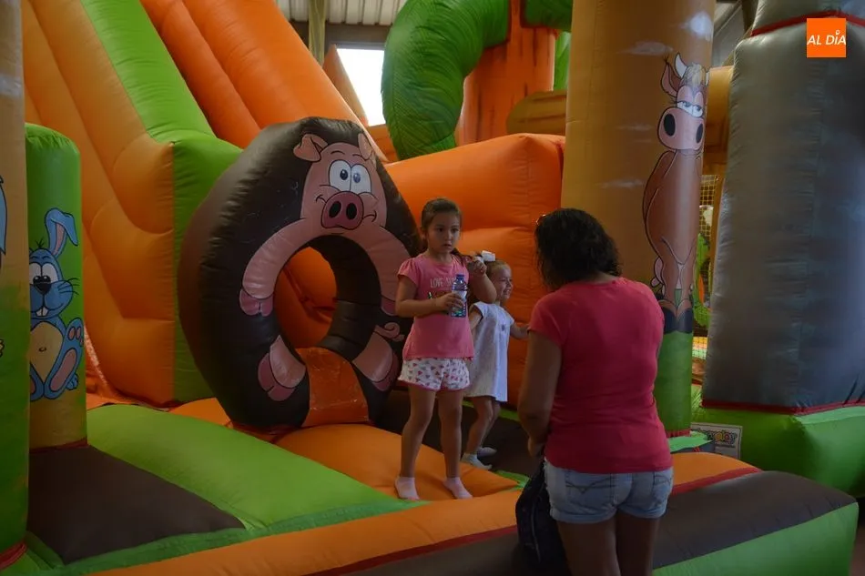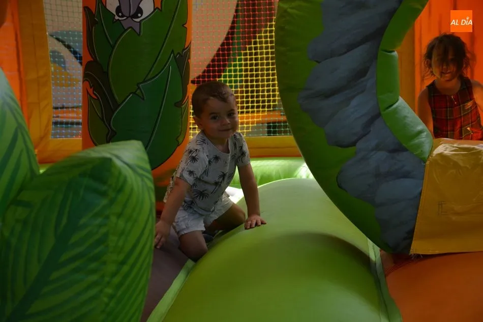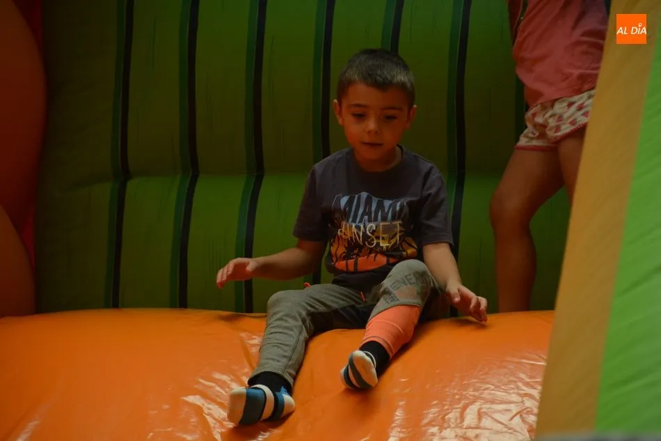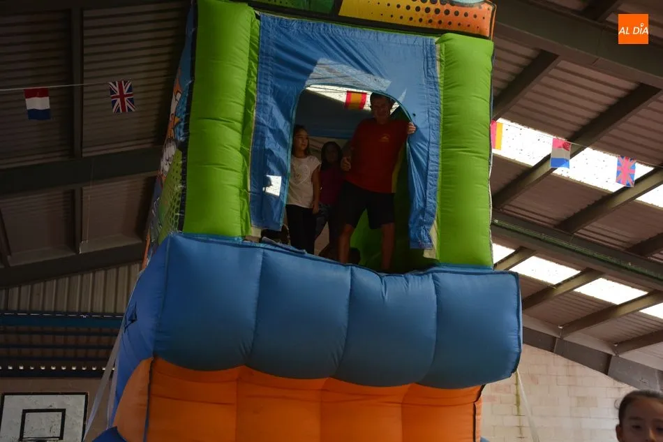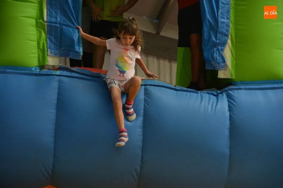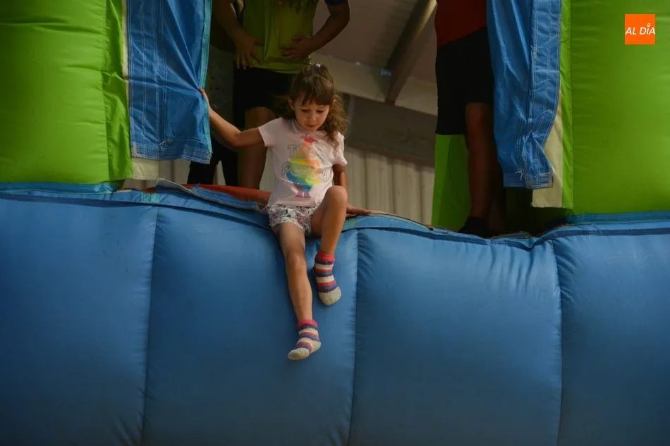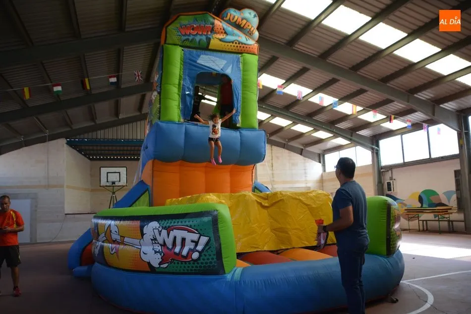 Esta mañana los más pequeños han saltado y jugado en los hinchables situados en el pabellón y continuarán en la tarde