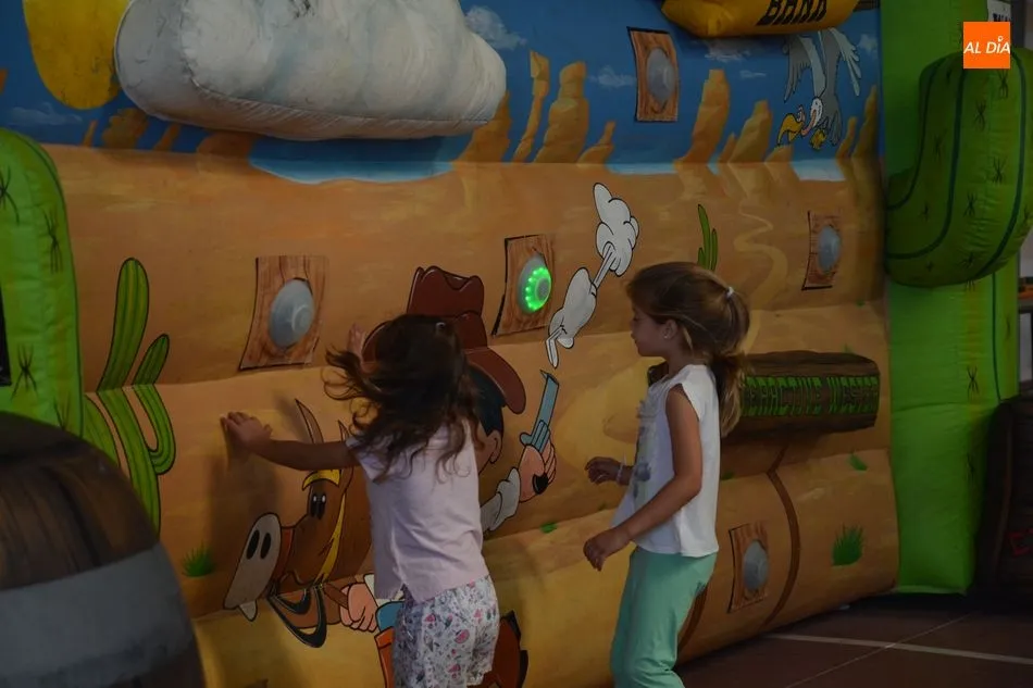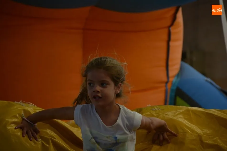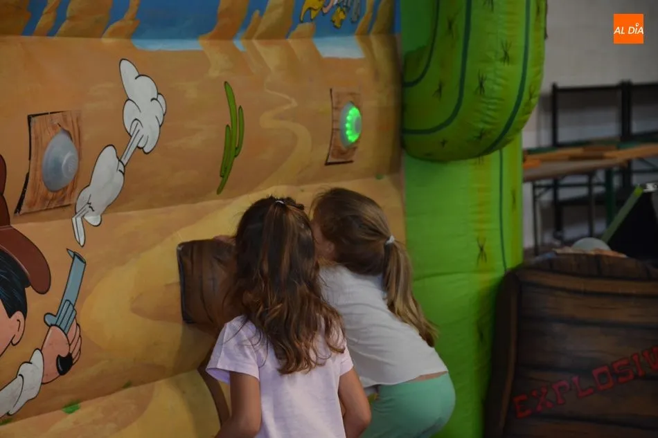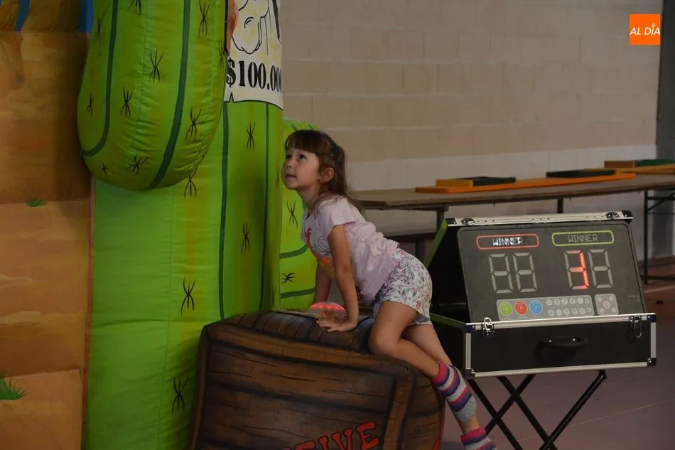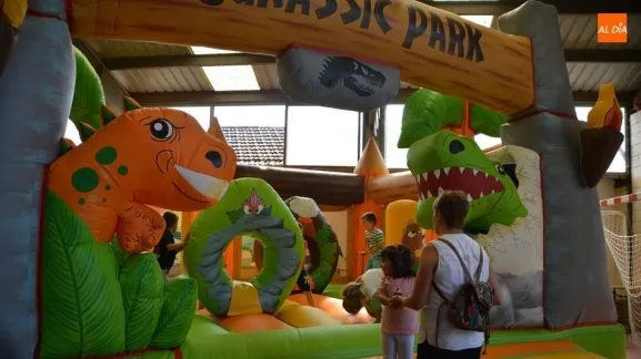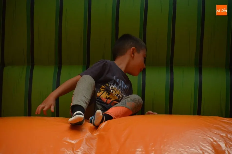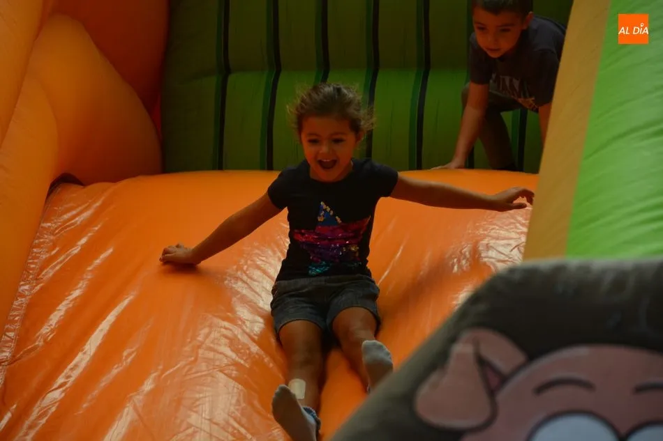 Esta mañana los más pequeños han saltado y jugado en los hinchables situados en el pabellón y continuarán en la tarde