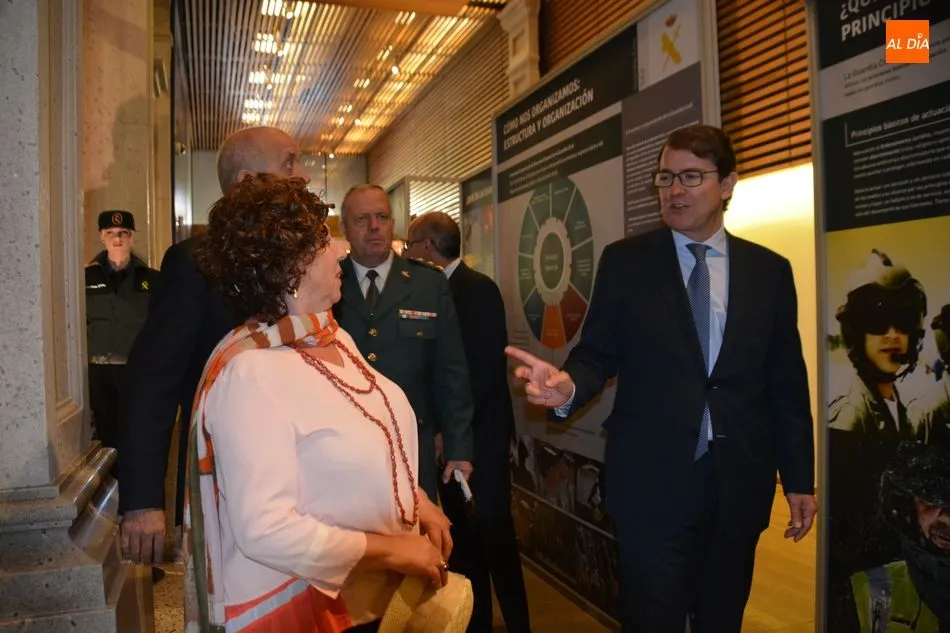 El director general de la Guardia Civil, Félix Azón ha sido el el encargado de inaugurar la muestra con la que se recuerda su historia, desde los orígenes hasta la actualidad, con las diferentes especialidades del cuerpo, con una razón de ser ?servir a los ciudadanos y a España?, destacó Azón, que ha estado acompañado por el alcalde de Salamanca, Alfonso Fernández Mañueco; el presidente de la Diputación, Javier Iglesias; la subdelegada del Gobierno, Encarnación Pérez y el delegado de la Junta, Bienvenido Mena.