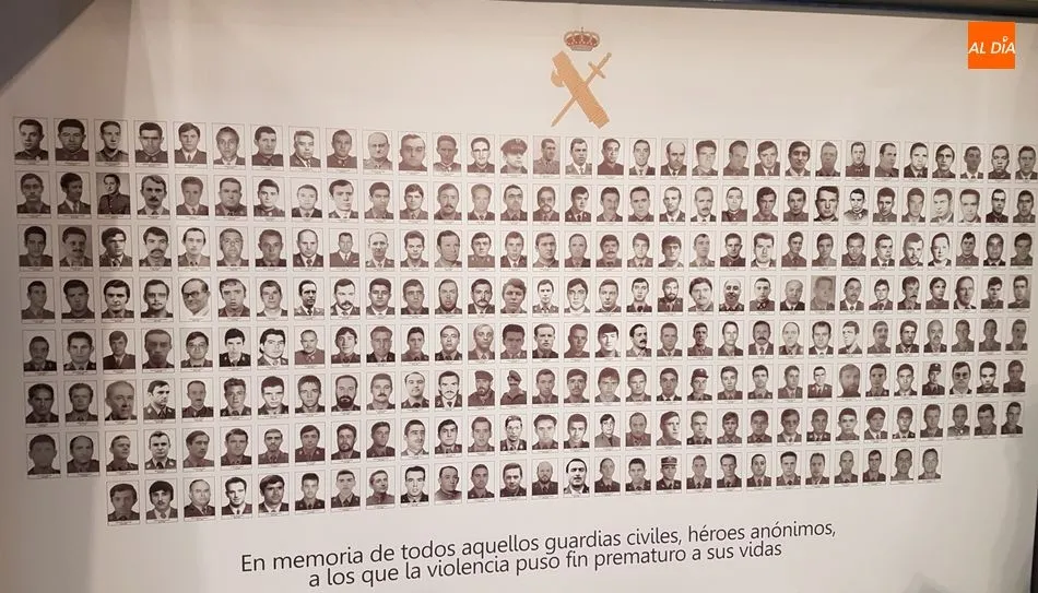 La muestra, en el marco de las actividades organizadas esta semana por la Guardia Civil con motivo de las fiestas de su patrona, la Virgen del Pilar, recoge a través de diferentes paneles y materiales la historia de la Guardia Civil, su estructura y organización, así como sus funciones, misiones y especialidades y los retos futuros como la ciberdelincuencia y la presencia en redes sociales, sin olvidar la lucha contra la violencia de género, las víctimas del terrorismo, las misiones internacionales o la presencia de la mujer en la Guardia Civil. Mención especial en la exposición para los agentes asesinados por ETA, con un panel en el que se recuerda a cada agente, desde la primera víctima del terrorismo -José Antonio Pardines, en 1968- a los dos últimos agentes, Diego Salvá y Carlos Sáenz de Tejada en 2009.