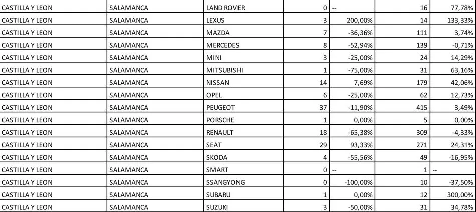 Salamanca cierra el mes de septiembre con un descenso de las matriculaciones del 14,54%