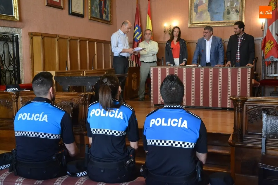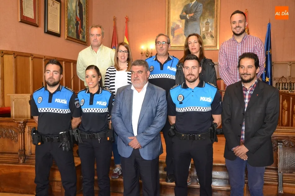 La Policía Local de Ciudad Rodrigo cuenta de forma oficial desde última hora de la mañana del martes con tres agentes más en su plantilla, una vez los tres jóvenes que se incorporaron al Cuerpo el pasado mes de junio han tomado posesión de sus plazas -convirtiéndose así en funcionarios de carrera- tras completar el preceptivo período de prácticas, durante el cual se han familiarizado con Ciudad Rodrigo y con el funcionamiento de la Policía mirobrigense.