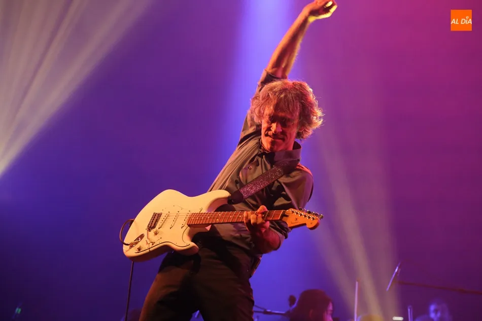 Miguel Ríos regresaba este viernes a Salamanca con su gira 'Symphonic Ríos', concierto programado por el Ayuntamiento dentro del ciclo musical ?Nuestras Voces?, con motivo del VIII Centenario de la Universidad. En esta ocasión, el artista llegaba acompañado de 'Los Black Betty Boys' y de una Orquesta Sinfónica de 50 músicos, dirigida por Carlos Checa. El artista mostraba su lado más sinfónico, pero debajo de él todavía guarda el rockero que siempre habitó y eso se hizo notar, sobre todo en algunos de sus temas más emblemáticos como Bienvenidos, Santa Lucía, El río o El rock de una noche de verano.