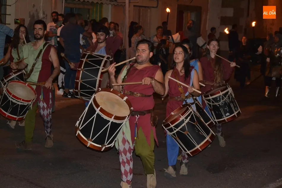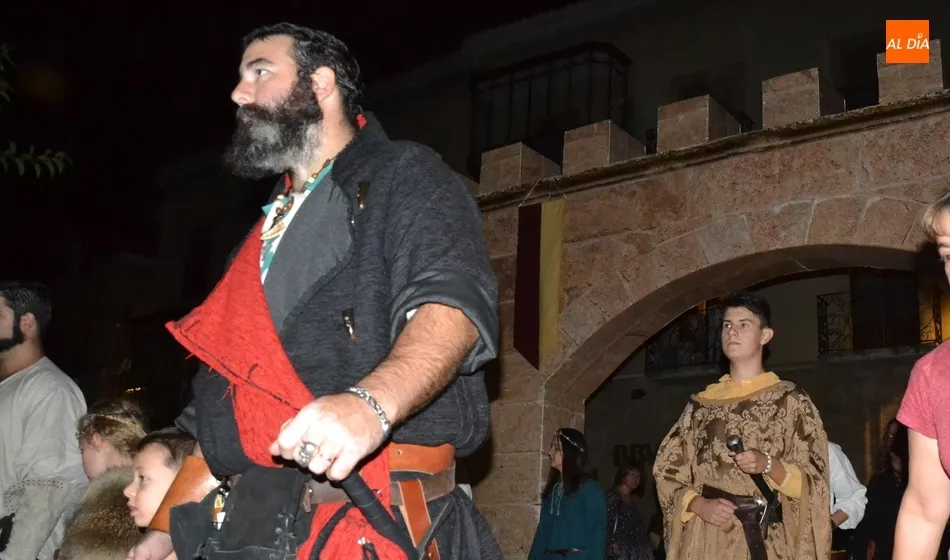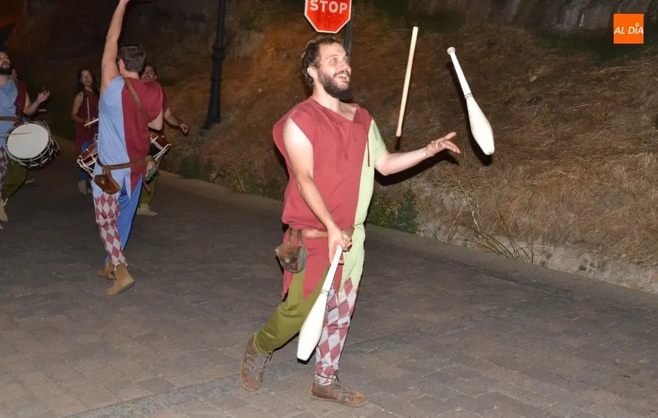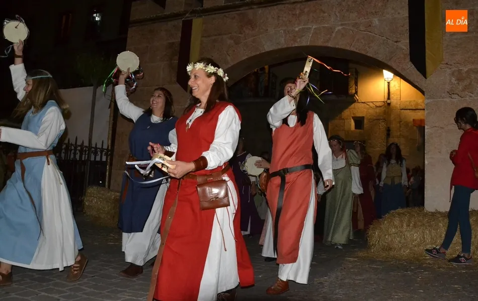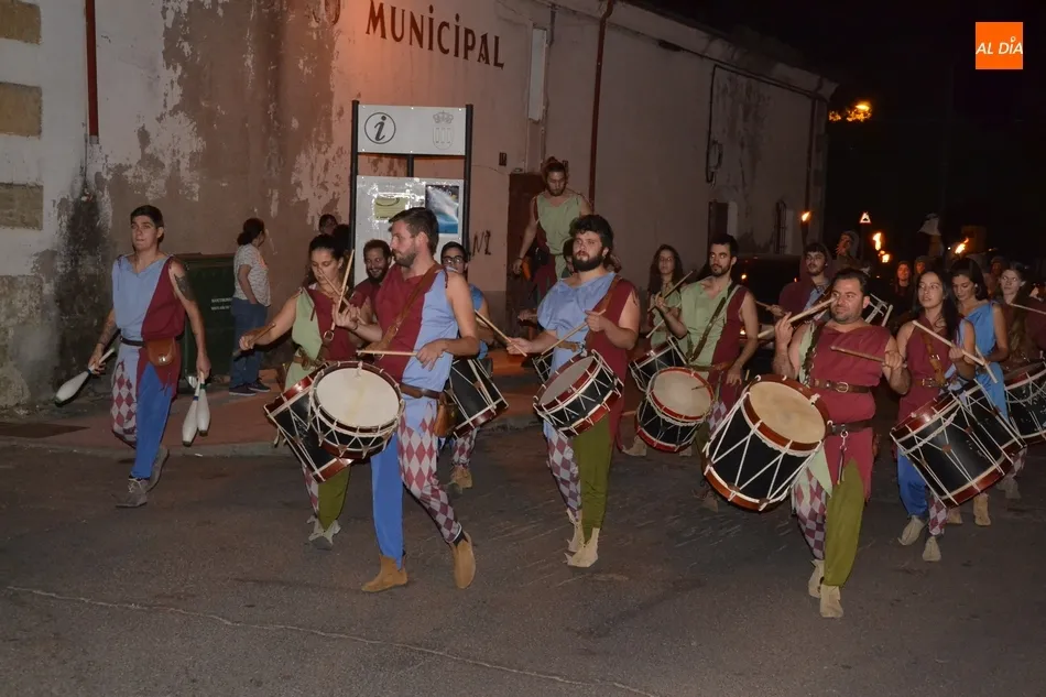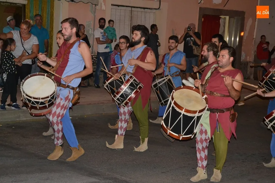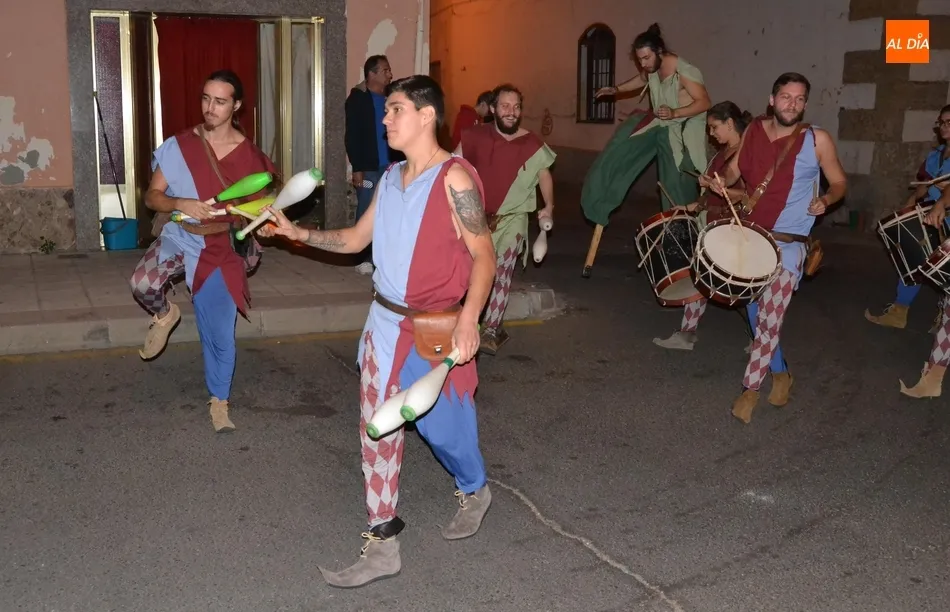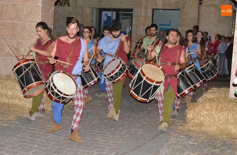 Además de los propios integrantes de Rodericus ejerciendo varias funciones: portando antorchas, tocando tambores, llevando aves o bailando cariocas, el desfile contó con la participación de varios de los grupos invitados de la Feria de este año, como el grupo de Tambores y saltimbancos Santa María, el grupo humorístico Jenus, o Popy Vegas, que ofrecerá cuentacuentos en los jardines de la Plazuela del Castillo.
