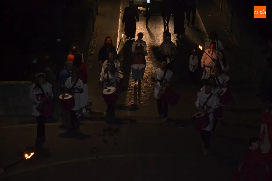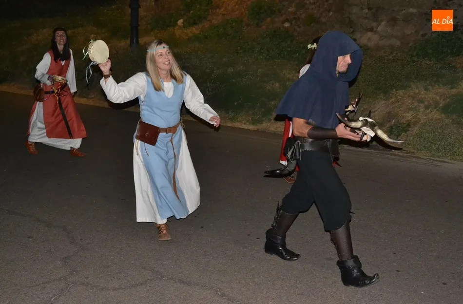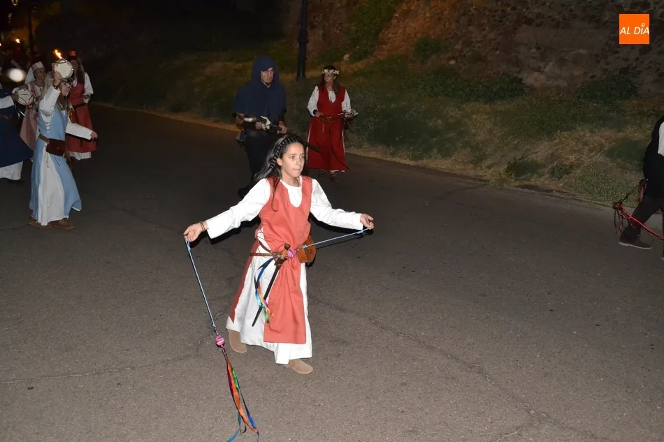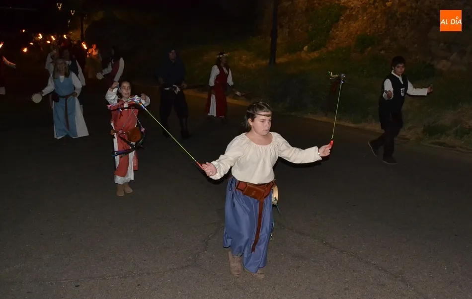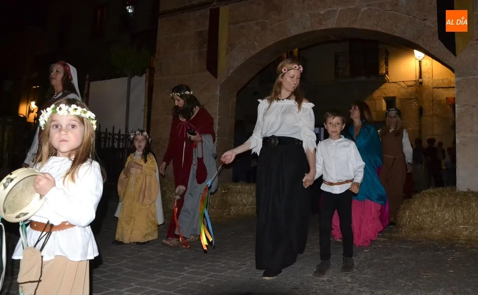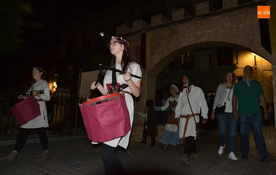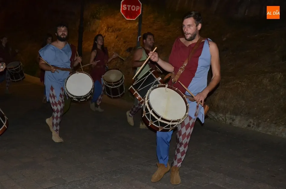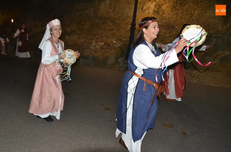 Además de los propios integrantes de Rodericus ejerciendo varias funciones: portando antorchas, tocando tambores, llevando aves o bailando cariocas, el desfile contó con la participación de varios de los grupos invitados de la Feria de este año, como el grupo de Tambores y saltimbancos Santa María, el grupo humorístico Jenus, o Popy Vegas, que ofrecerá cuentacuentos en los jardines de la Plazuela del Castillo.