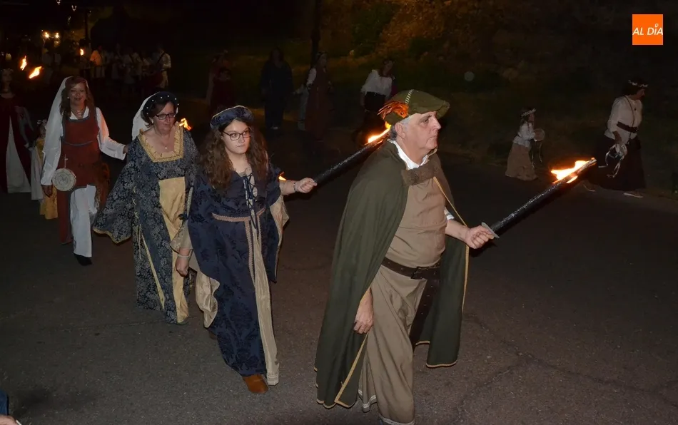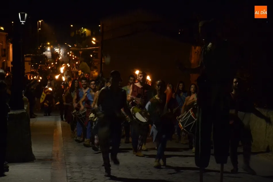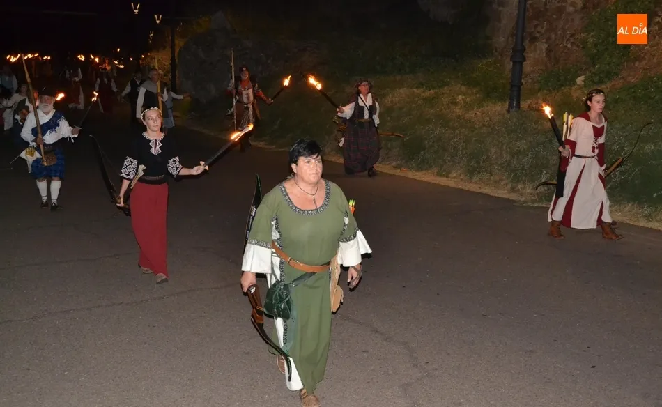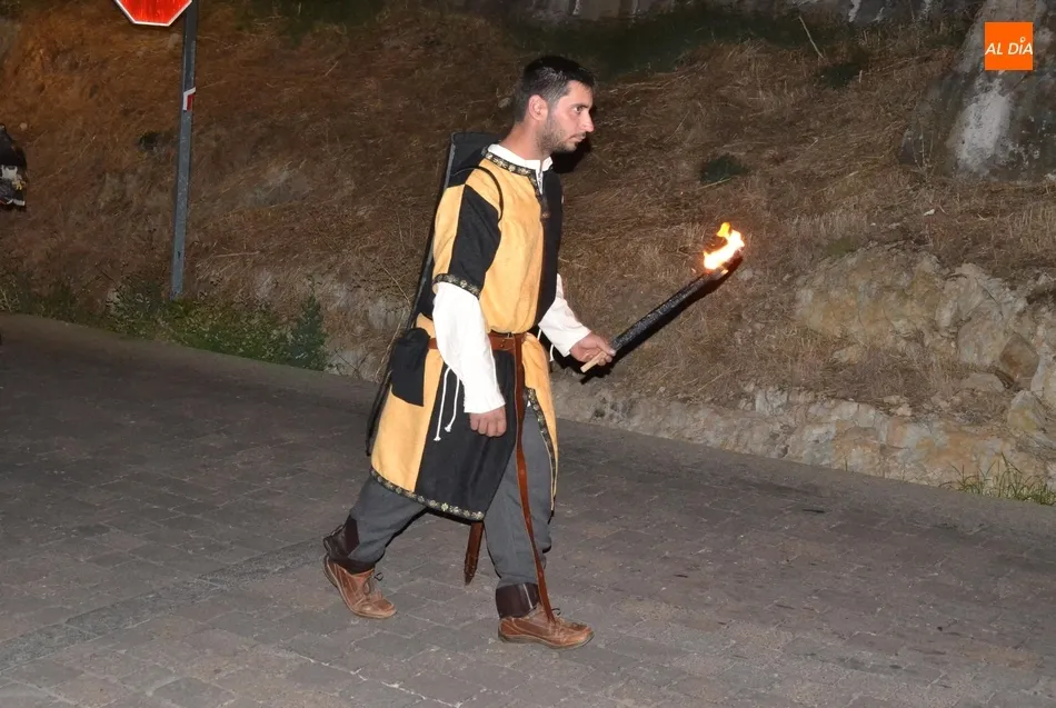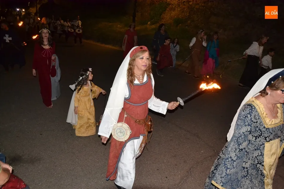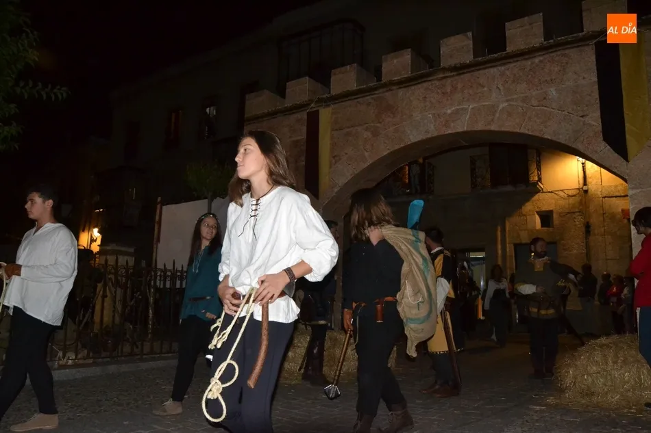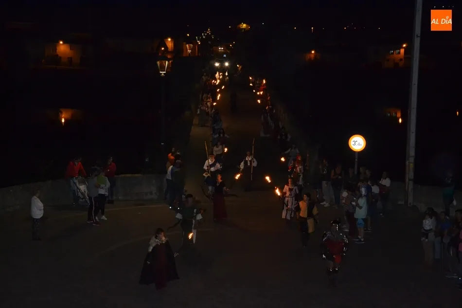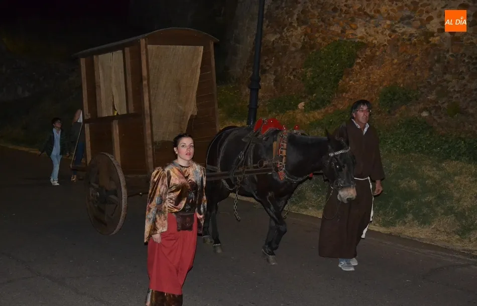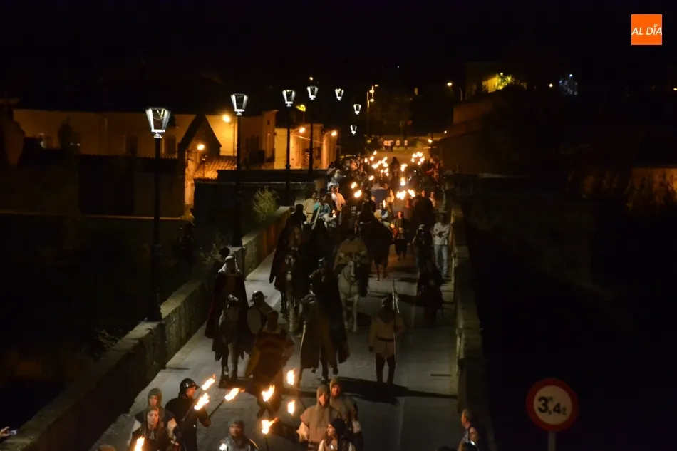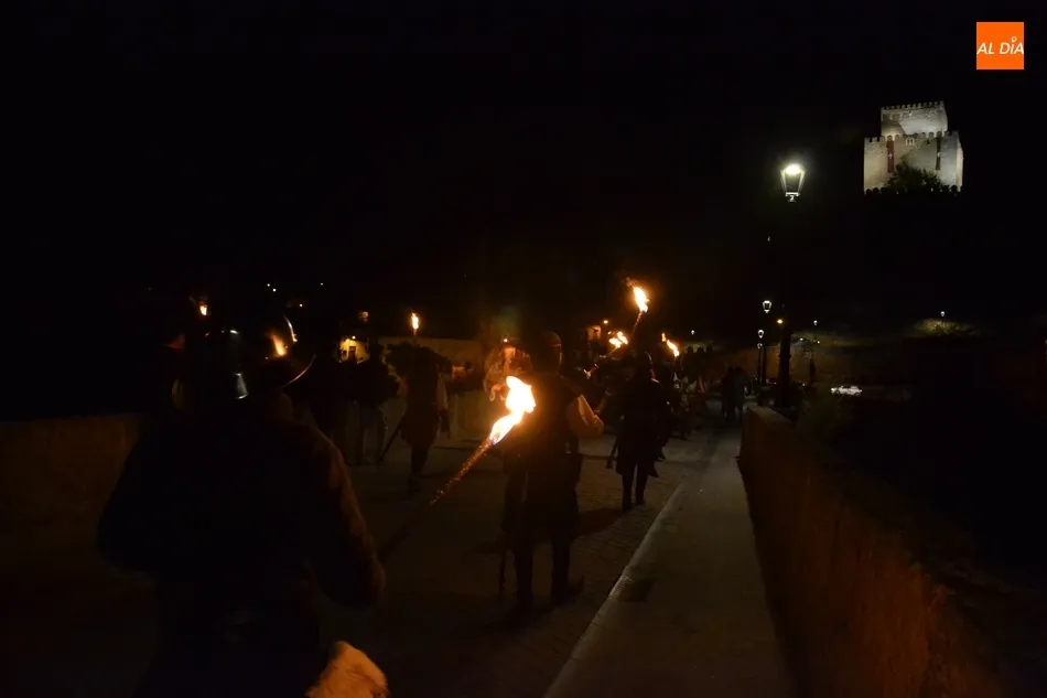 La comitiva atravesó el Puente Mayor y subió la Cuesta de Santiago, introduciéndose por la Puerta de Santiago en el recinto histórico. Una vez dentro, tomaron la calle San Juan y llegaron hasta la Plaza Mayor para recoger a los miembros de la Corporación Municipal, asistiendo este año Domingo Benito, Joaquín Pellicer, Carlos Fernández Chanca, Azahara Martín, Soraya Mangas, Marcos Iglesias, José Manuel Jerez y Beatriz Jorge Carpio, todos ellos convenientemente ataviados a la época de la Feria.