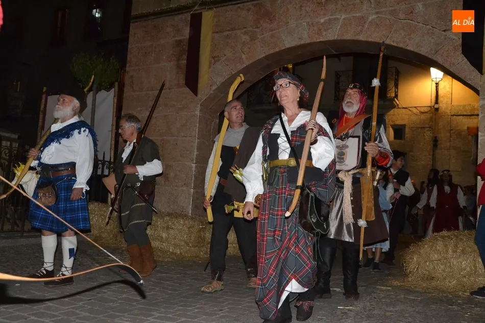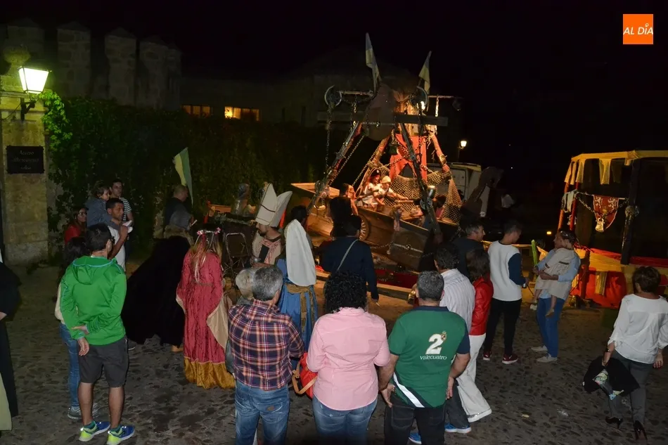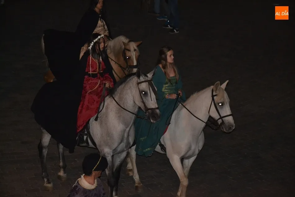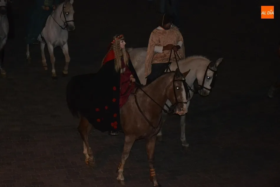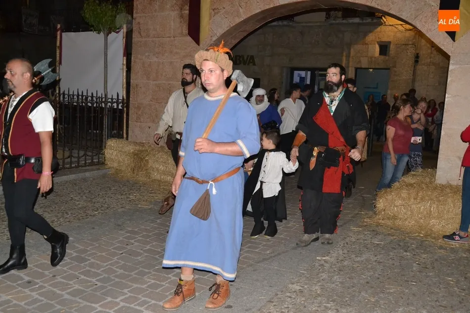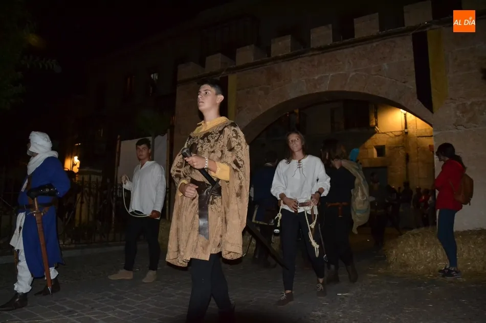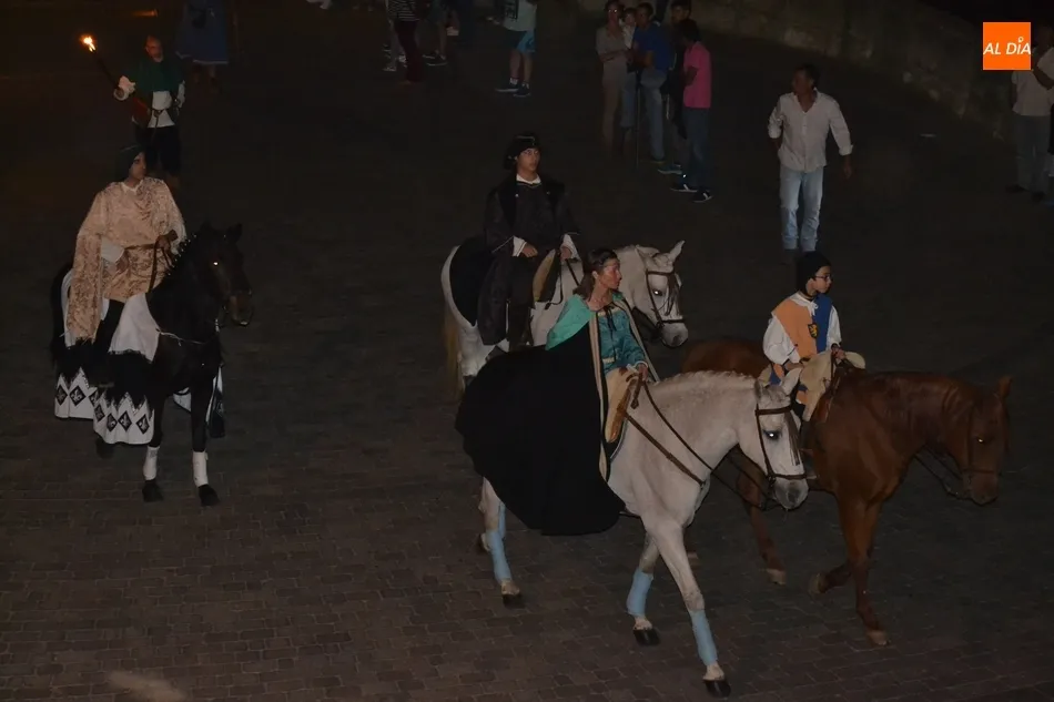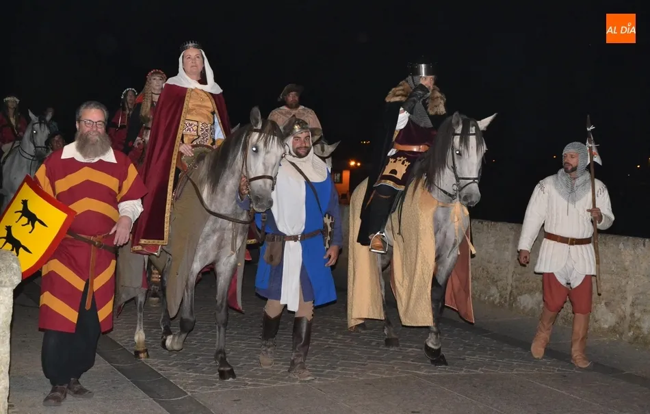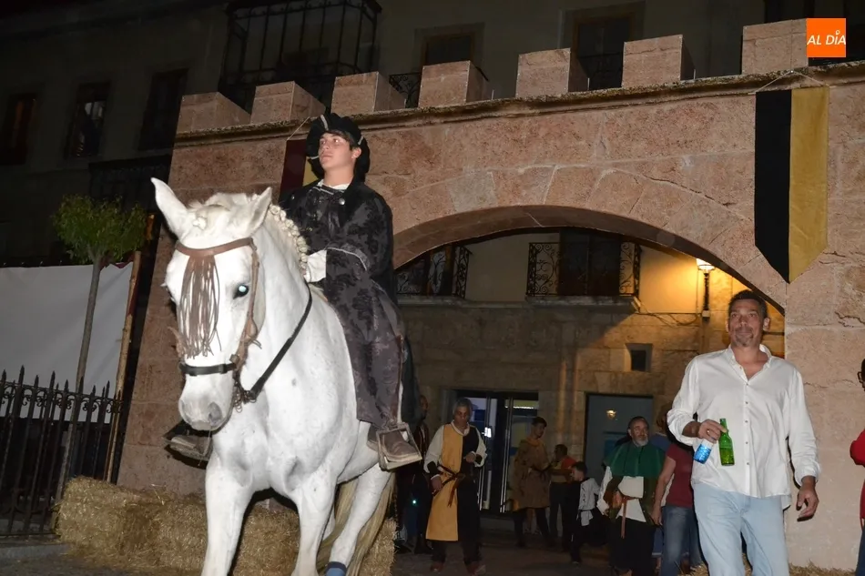La primera gran cita de la Feria tuvo lugar a primera hora de la noche: el desfile de la comitiva de los Reyes Alfonso XI y María de Portugal, que una vez más se puso en marcha en el Arrabal del Puente, donde se fueron congregando todos los participantes en el mismo, entre los que se encontraban este año bastantes caballistas (más de una decena).