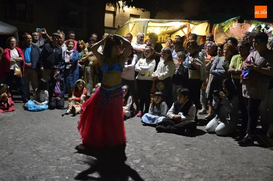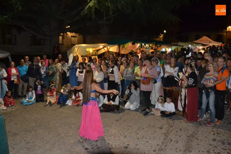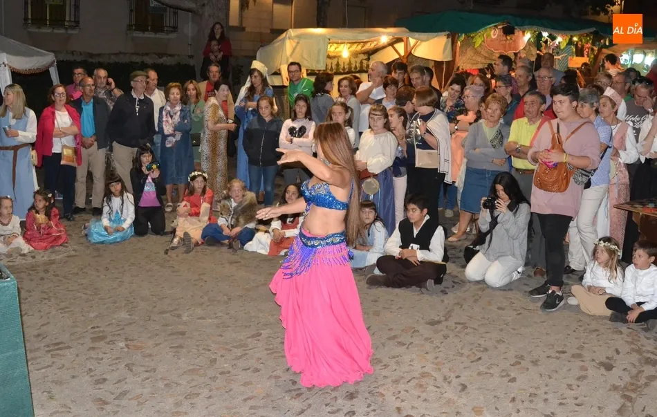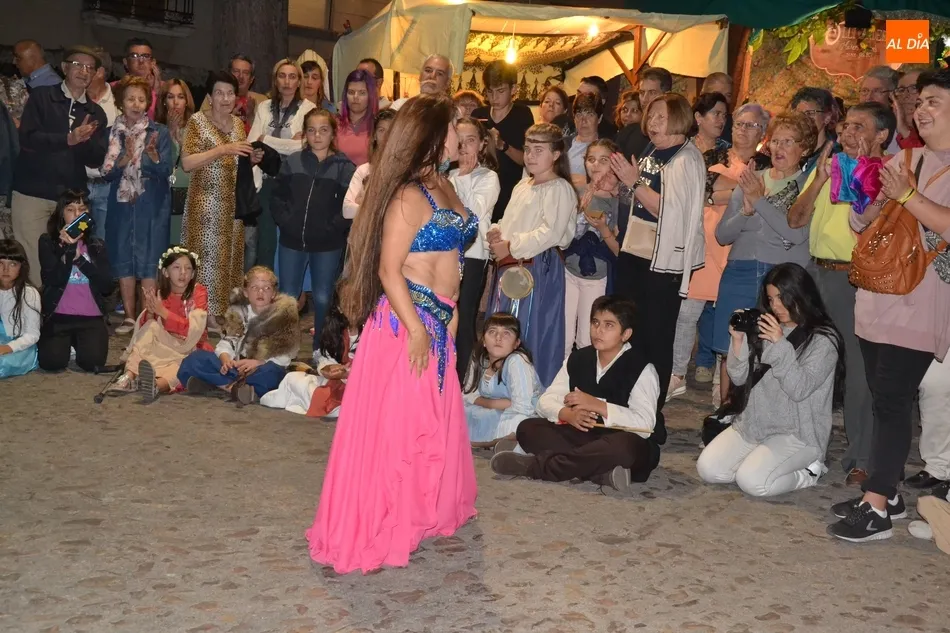 Una vez en la Plazuela, hubo un tiempo de espera hasta que llegó el momento de la inauguración oficial de la Feria con el pregón a cargo de la delegada de Ferias, Soraya Mangas, que se subió al pequeño escenario montado junto al Verraco, que este año tiene al lado el mesón de la Feria, que estuvo bastante concurrido durante toda la tarde-noche. Tras el pregón, hubo una exhibición de Danza Oriental a cargo del Centro de Pilates y Danza Tere.