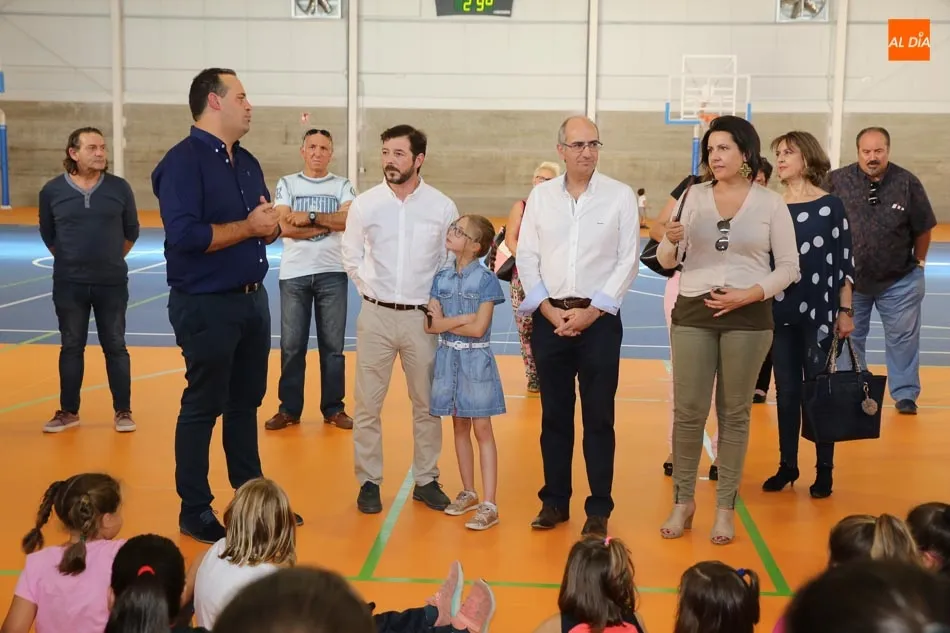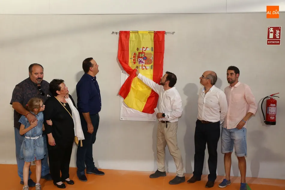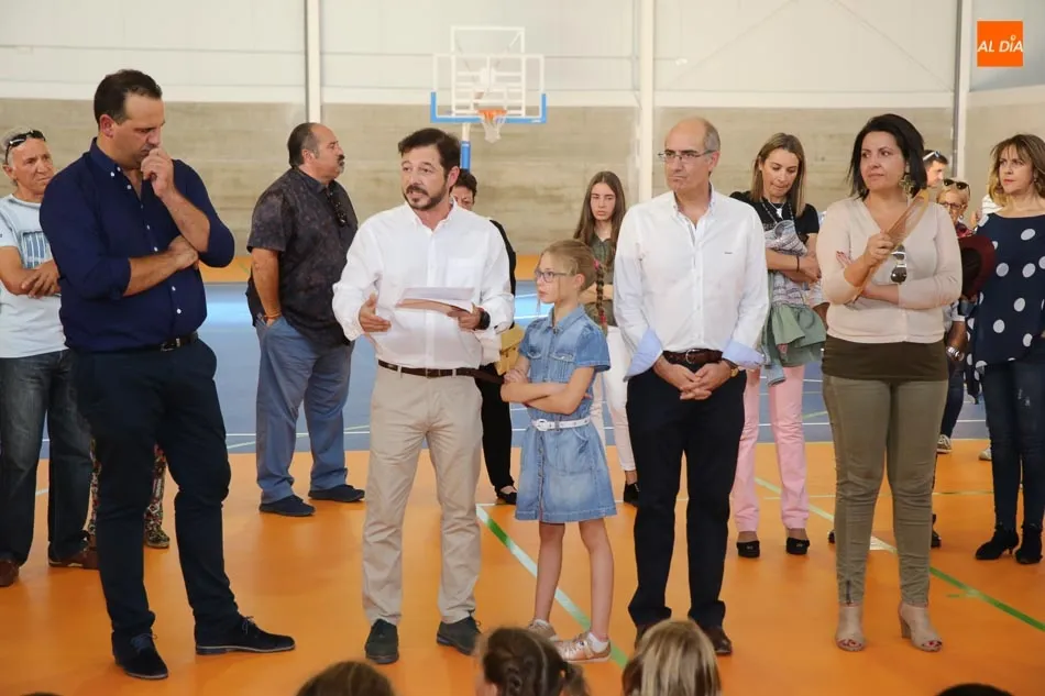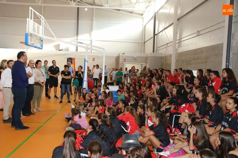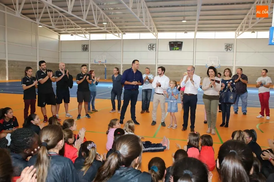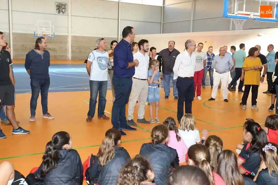 David Mingo y Javier Iglesias presiden la inauguración del polideportivo al que da nombre la jugadora del Club Baloncesto de la localidad fallecida a temprana edad