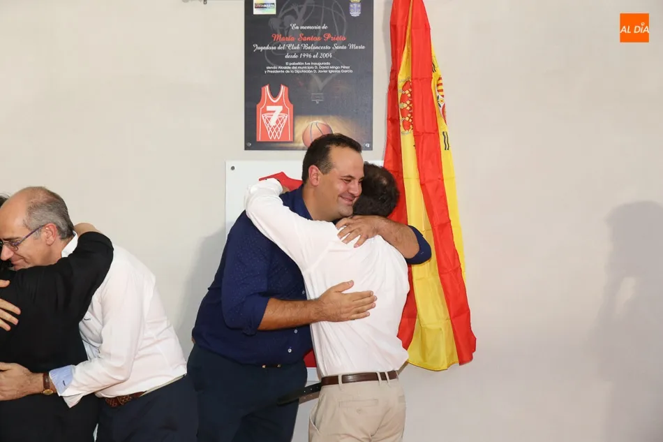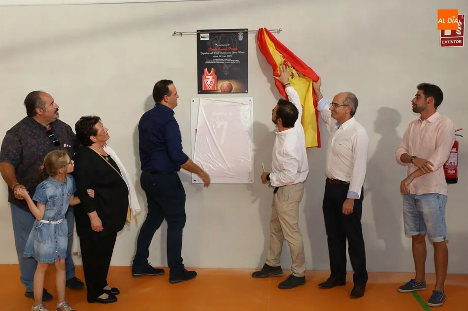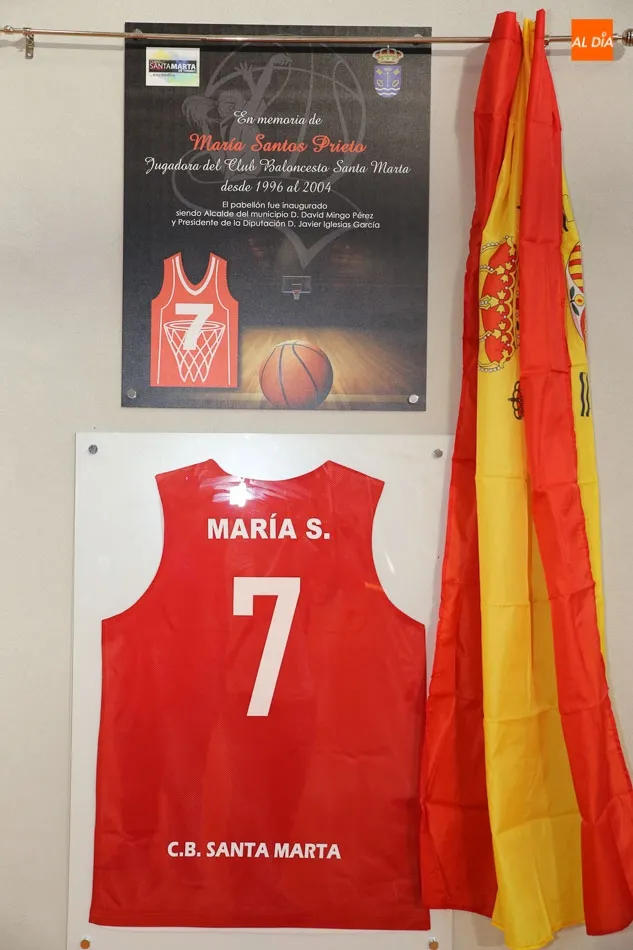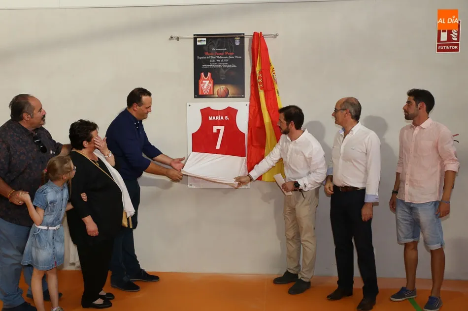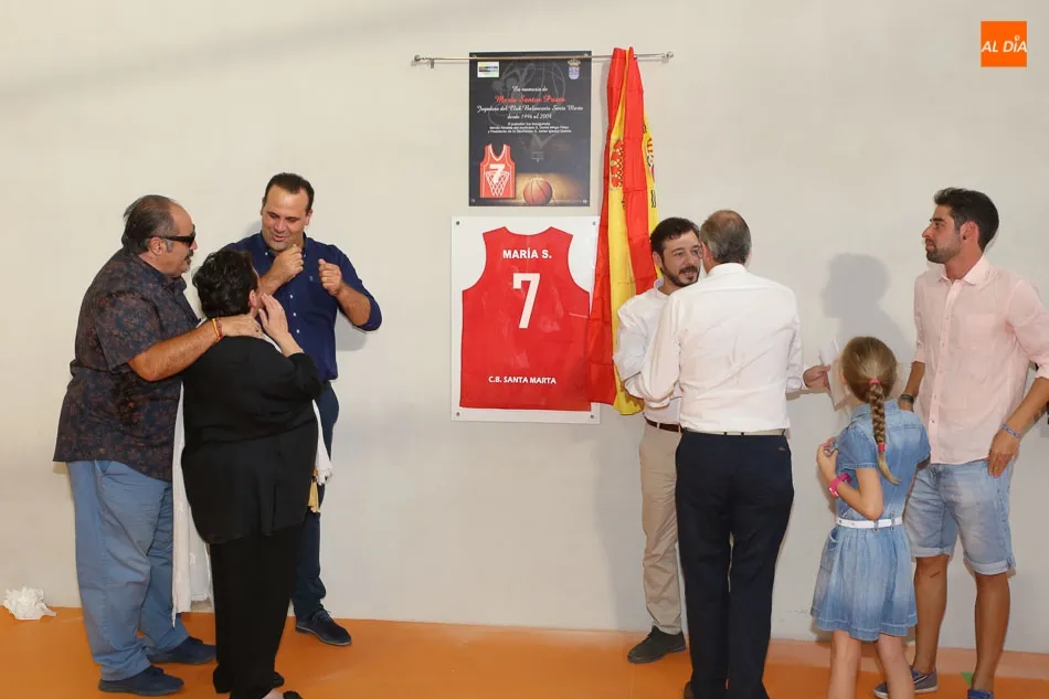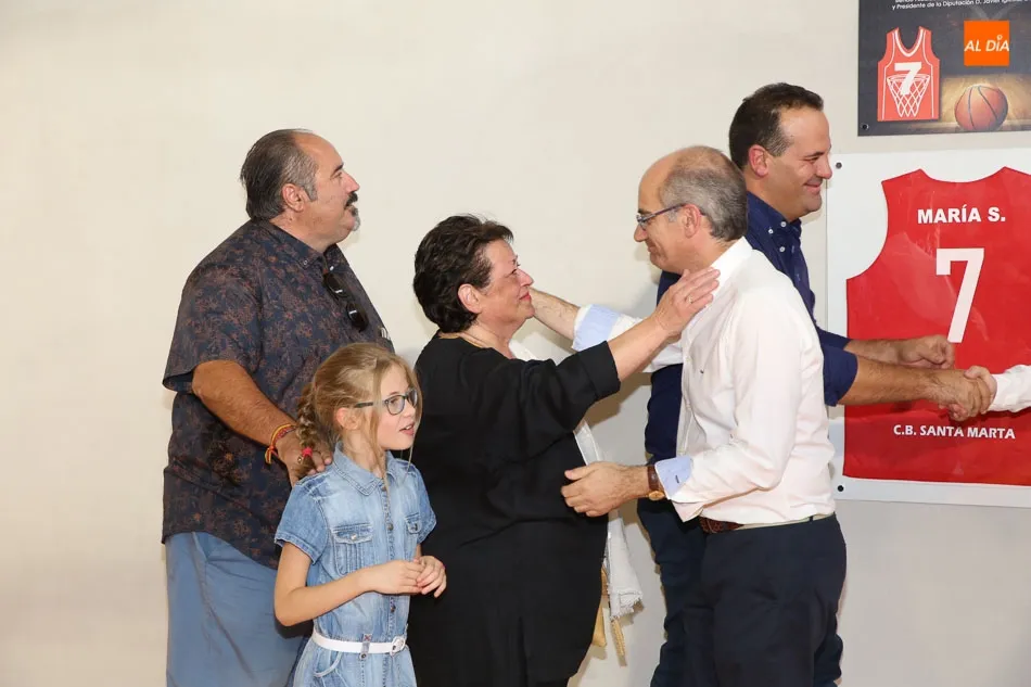 El acto de inauguración ha sido también un emotivo homenaje y reconocimiento a María Santos, que da nombre a las nuevas instalaciones deportivas y en cuyas paredes permanecerá para siempre la camiseta con el número 7 que vistió la jugadora del Club Baloncesto Santa Marta fallecida a temprana edad. Su hermano Óscar Santos recordó emocionado los valores que representó como deportista y agradeció este gesto hacia una persona ?que lo doy todo por el deporte?.