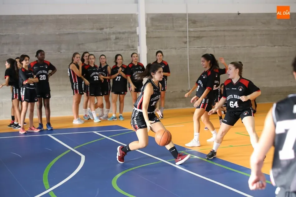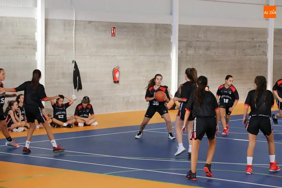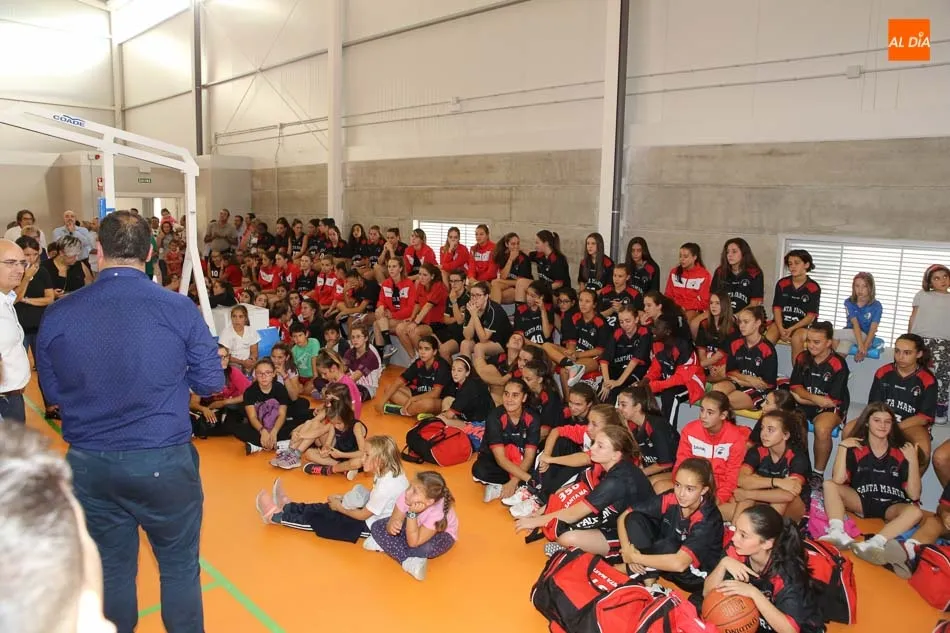 El alcalde de Santa Marta de Tormes, David Mingo, y el presidente de la Diputación, Javier Iglesias, han inaugurado esta tarde el nuevo pabellón polideportivo municipal ?María Santos?, ubicado en la avenida de Valladolid. Junto al resto de miembros de la Corporación municipal y vecinos, el estreno de las instalaciones ha contado con el respaldo de las cerca de 400 chicas que forman parte del Club Baloncesto Santa Marta y que a partir de ahora podrán disfrutar de este polideportivo de 1.500 metros cuadrados y que ha supuesto una inversión de 450.000 euros.