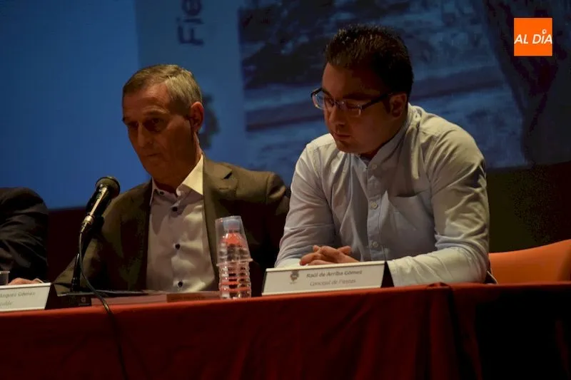 El veterano periodista salmantino Santiago Juanes fue el encargado de presentar esta tarde el libro de las fiestas de Santa Teresa de Jesús 2018. Juanes estuvo acompañado sobre el escenario por el alcalde de Alba de Tormes, Jesús Blázquez, la concejala de Cultura, Sonia Sánchez, y el concejal de Festejos, Raúl de Arriba.