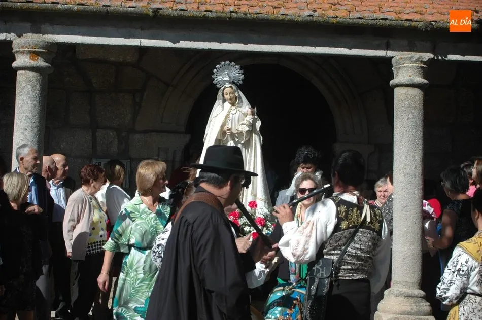 Bajo los sones de la gaita y el tamboril de El Mariquelo y su hermano Carlos discurrieron este domingo los actos en honor a la Virgen del Rosario en la localidad de Cabeza del Caballo, día grande de las fiestas de las Madrinas y que comenzaba con la misa matinal oficiada por el párroco Alberto Holgado.