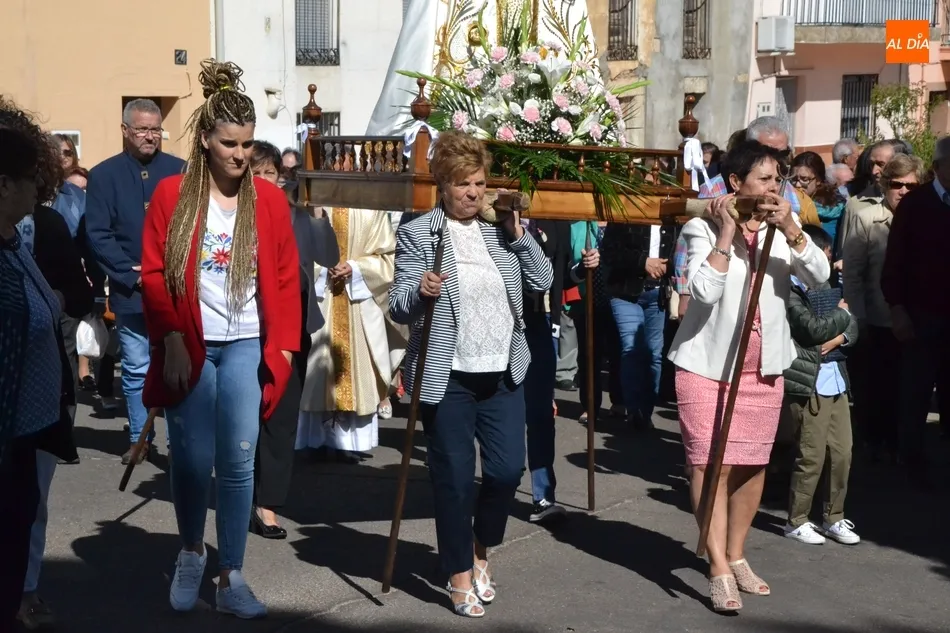 El barrio de El Puente de Ciudad Rodrigo disfrutó durante la mañana del domingo del día grande de sus celebraciones en honor a la Virgen del Rosario, que en esta ocasión han coincidido con el día en que aparece la festividad en el calendario (en los años en que eso no ocurre, la Parroquia de Santa Marina mueve los actos a un domingo).