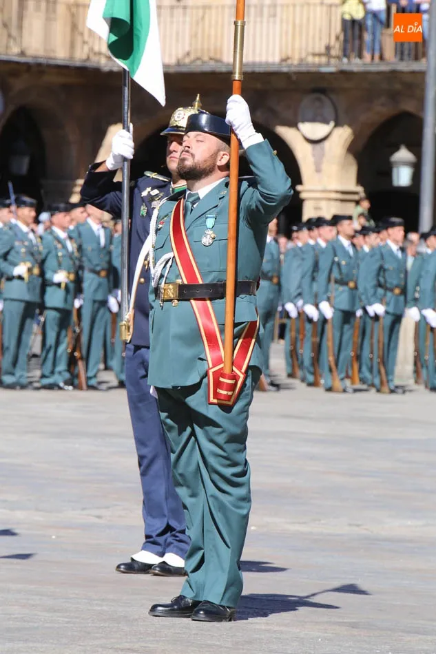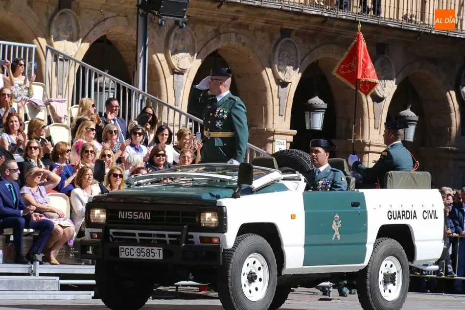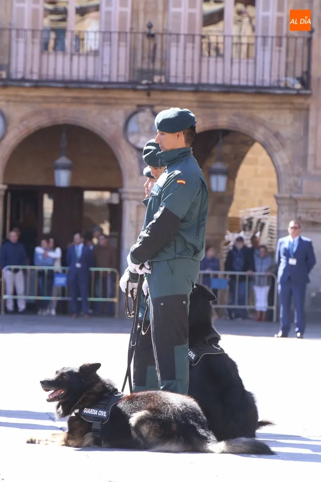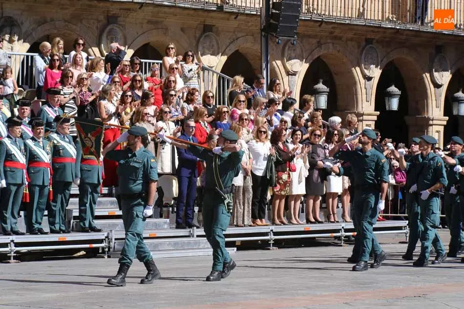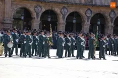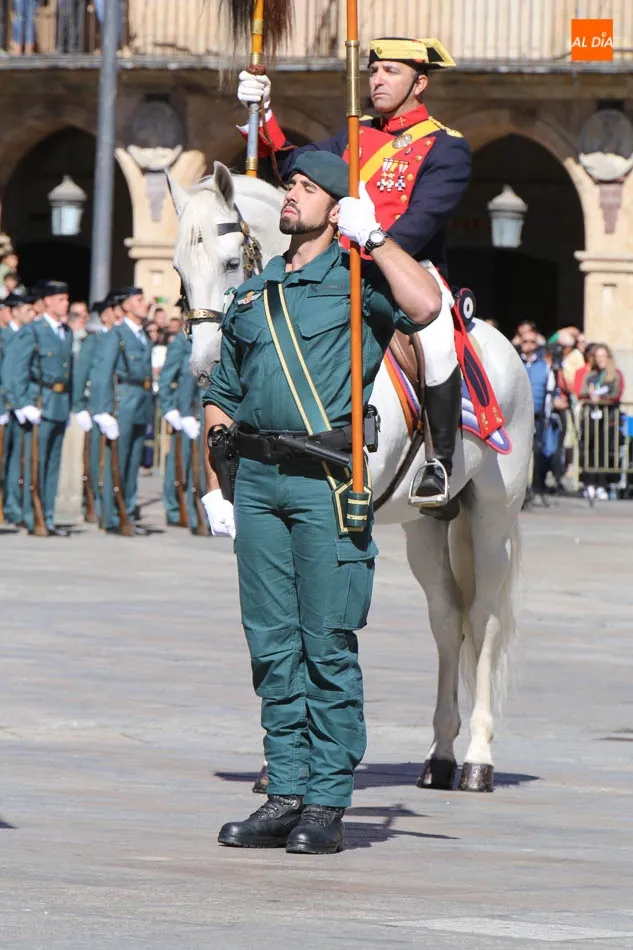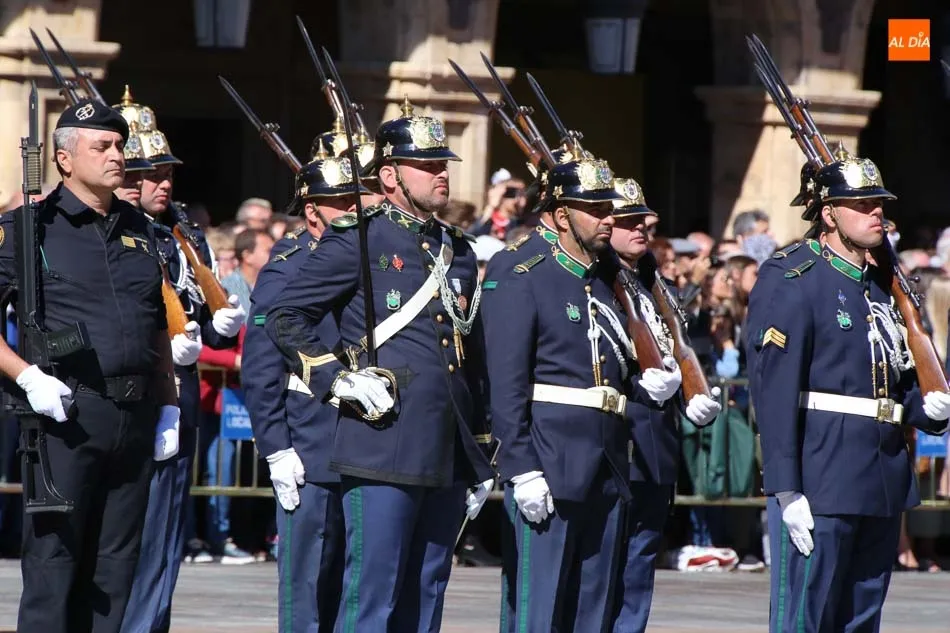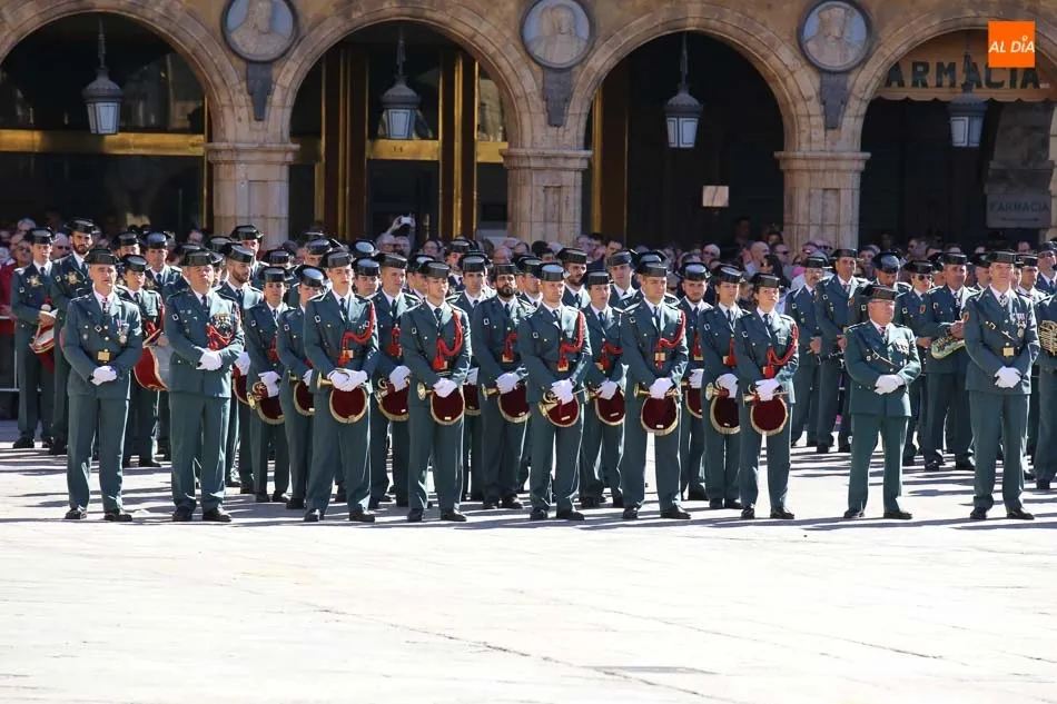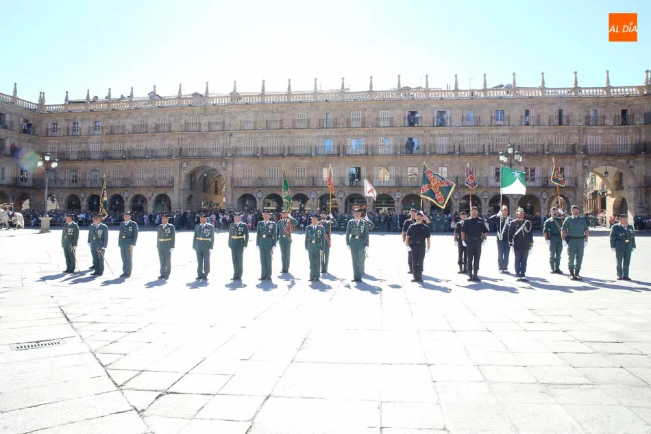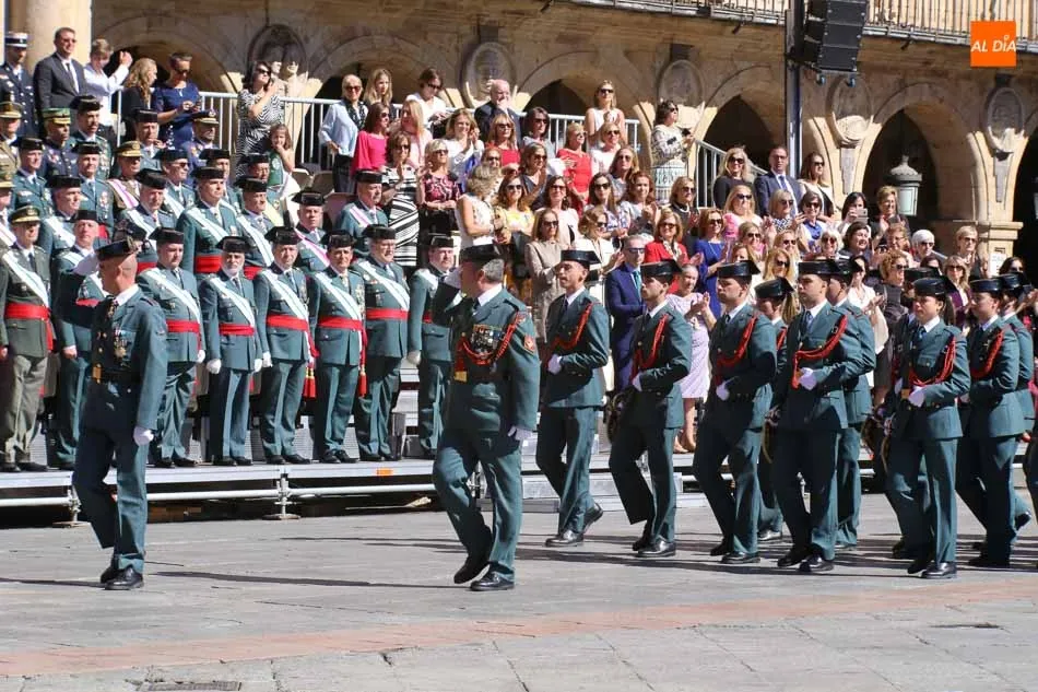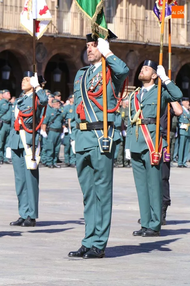 La Plaza Mayor de Salamanca vistió este domingo sus mejores galas para recibir una de las celebraciones más esperadas por la Guardia Civil, el acto castrense enmarcado en las actividades conmemorativas por la festividad de su patrona, la Virgen del Pilar.